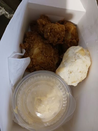 Read moreWaited 17 minutes to get our food. Some of the chicken was old/burnt. Chicken wasn't fresh. Looked as if I received what was leftover from a previous dinner on my chicken because they were tiny! I asked for a large mash potato. I was given a normal container of it. They said they would hand us our food after wedges got done. After 15 minutes I walked inside to get our food that just got finished. Wedges were fresh but our chicken was cold and our chicken littles were cold. Ordered at 7:20. Got out at 7:37. As of 4/22/17 we almost were handed the wrong order again and once I handed the food to my friend, it busy and gravy landed on her and in my carpet of the car and she is severely burned because of it. They need better crew members and equipment for gravy. I called and asked for manager and all he said was ok and he did it repetitively. Didn't care. I hear a lawsuit if burns worsen!
