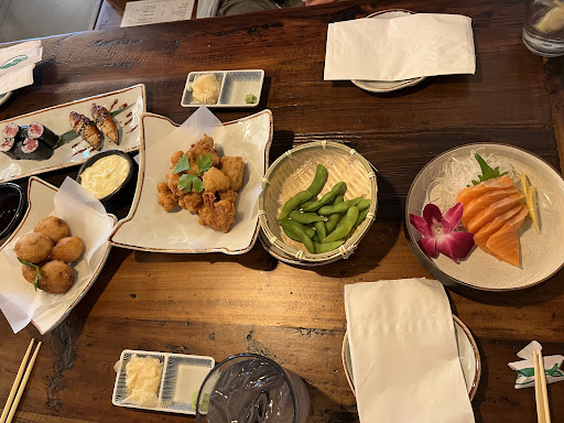As you enter, what I can only describe as a jazzy Japan aesthetic welcomes you like an old friend, setting the stage for an evening of culinary delight. The atmosphere is tailor-made for casual hangs with friends or coworkers, making it the ideal spot for unwinding after a long day. Although our lunchtime visit limited our ability to sample drinks, the food more than made up for it. The rolls, while small, pack a punch of flavor and melt in your mouth. The chicken karaage and edamame may fall into the 'average' category, but fear not – the rice bowls are there to save the day, offering a filling and delicious alternative. The takoyaki was also amazing as it achieves the delicate balance of crispy and chewy that other establishments often struggle to master. All in all, this is the go-to spot for those seeking a casual and calm ambiance to catch up and chat with friends. We'll definitely be back, armed with an empty stomach and a craving a relaxing and warm place for a bowl of...