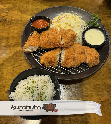 Read moreThe portions are very generous and the prices are reasonable. I ordered the spicy tonkotsu ramen and the cheese katsu. The ramen was slightly salty but it was still incredibly delicious with the bouncy noodle texture and the soft boiled eggs. It came with 2 pieces of chashu and although they were not tender, the charred flavor of the pork really came through. The spiciness of the ramen was just hot enough and wasn't completely overwhelming. The cheese katsu came with 6 big pieces of pork filled with melted mozzarella cheese, tangy dipping sauce, a side salad with dressing, and a bowl of rice. The katsu was very crispy and the sauce complimented it very well although rice was not necessary. However, it is still nice that rice was complimentary and I felt that the rice went well with the creamy salad dressing that had a strong flavor. It is also nice that each entrée comes with a side of spicy pickled radish to cut down on the fattiness.