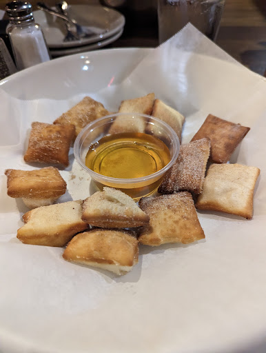 I then ordered the sopapillas. I grew up in El Paso and Southern New Mexico. Sopapillas out there are these fairly large fluffy pastry pillows. An image online showed two medium sized sopapillas, so I was excited thinking I might have found a place that makes them right. So when a plate of tiny little bite sized squares came out, I was already disappointed. When I bit into one though, I found the center to be non puffed raw dough. Even if it has been cooked all the way through, it was the completely wrong dough type. It honestly looks like it's a bag of little frozen dough squares that they just fry off.