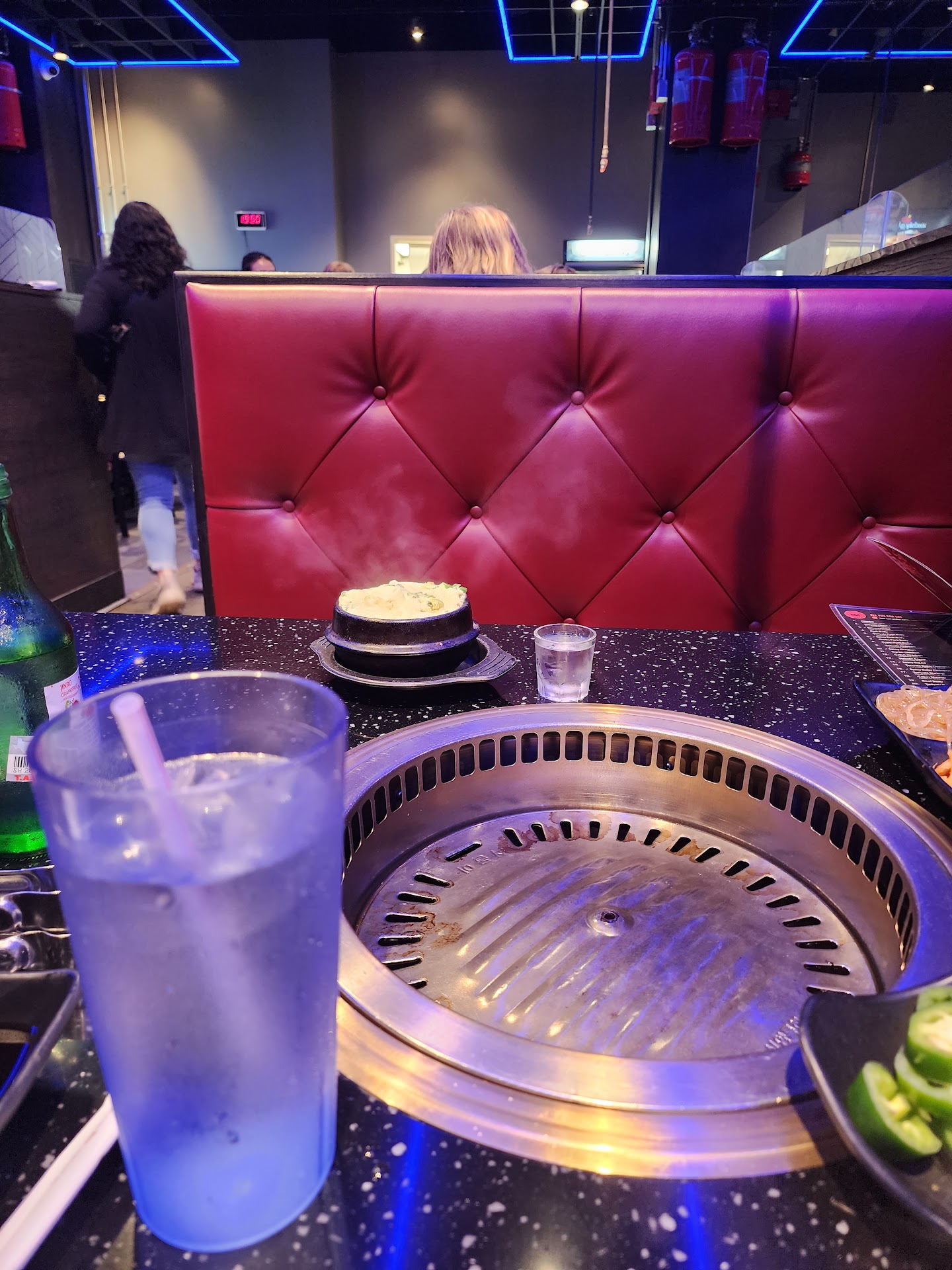 To speak on one specific recent experience, I came into the restaurant at around 8PM with a group of 6 on a Monday night, knowing that it closed at 10PM, but also acknowledging that we always eat quickly and are easy customers to please. We were greeted then seated promptly at a booth with only one grill. It was not that busy, but we figured it would be fine. We all got waters and ordered our meats. Note that you can only order three plates of meat at a time. It also states on the menu that each person can have a side (choice of spicy tofu stew, steamed egg, bean paste soup), but I guess there's been a change in policy, where you can only have one side per two guests and no refills. Anyways, the food tastes wonderful, but the service throughout the night left a sour taste in my mouth. It really was not that busy, and we are very patient people; HOWEVER, we never got our water refilled after literally attempting to track down our speed racer of a server, so one of our friends had to grab a pitcher and refill our waters himself. We pressed the button on the table periodically, but no one came to check on us. They simply asked us for our meat order, jot it down, then ran off. Never to be seen again until they're dropping the plates off. Even then, we would ask them for more side dishes or water, but they would be gone the second the meat plates hit the table. They never asked how everything was, or if we needed anything else. We were ignored and left alone. Lastly, we were told at 9:30PM to place a last call order, and we told our server what we wanted. Ten minutes passed, and no server could be seen on the floor, with just one or two other tables left. We pressed the button and waited for someone to come. Alas, our server, who took our last call order, came and huffed at us when we tried to remind her of our food, which was mistakenly brought to a couple two tables away from ours. "Our kitchen is already closed, I told you all that." Um, yes, we know? We are just trying to finish our last plates of meat then leave. Why would we tolerate this service any longer than we have to? We want to eat our money's worth and not come back again. We tried to explain that we already placed our order WITH HER, but she talked over us and just snapped, "What do you want?" We said, "LA Galbi, bulgogi, and thinly sliced pork belly." She shook her head and said the kitchen's closed, so they can't slice the pork belly. So my friend asked her, "What is available then?" All she said in response was, "Hurry up, and order." Sigh.