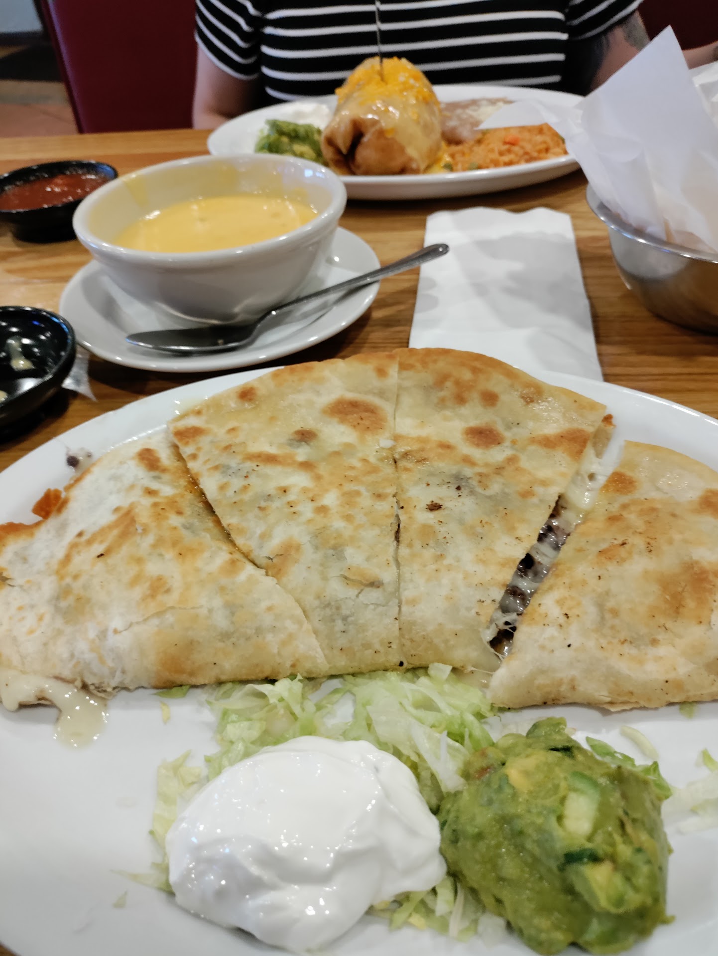 The beef quesadilla, like the black bean dip, immediately became one of my new staple comfort foods. I think they actually put some of that dip in the quesadilla itself and I wanted to cry tears of joy, especially as I was being topped off on everything.