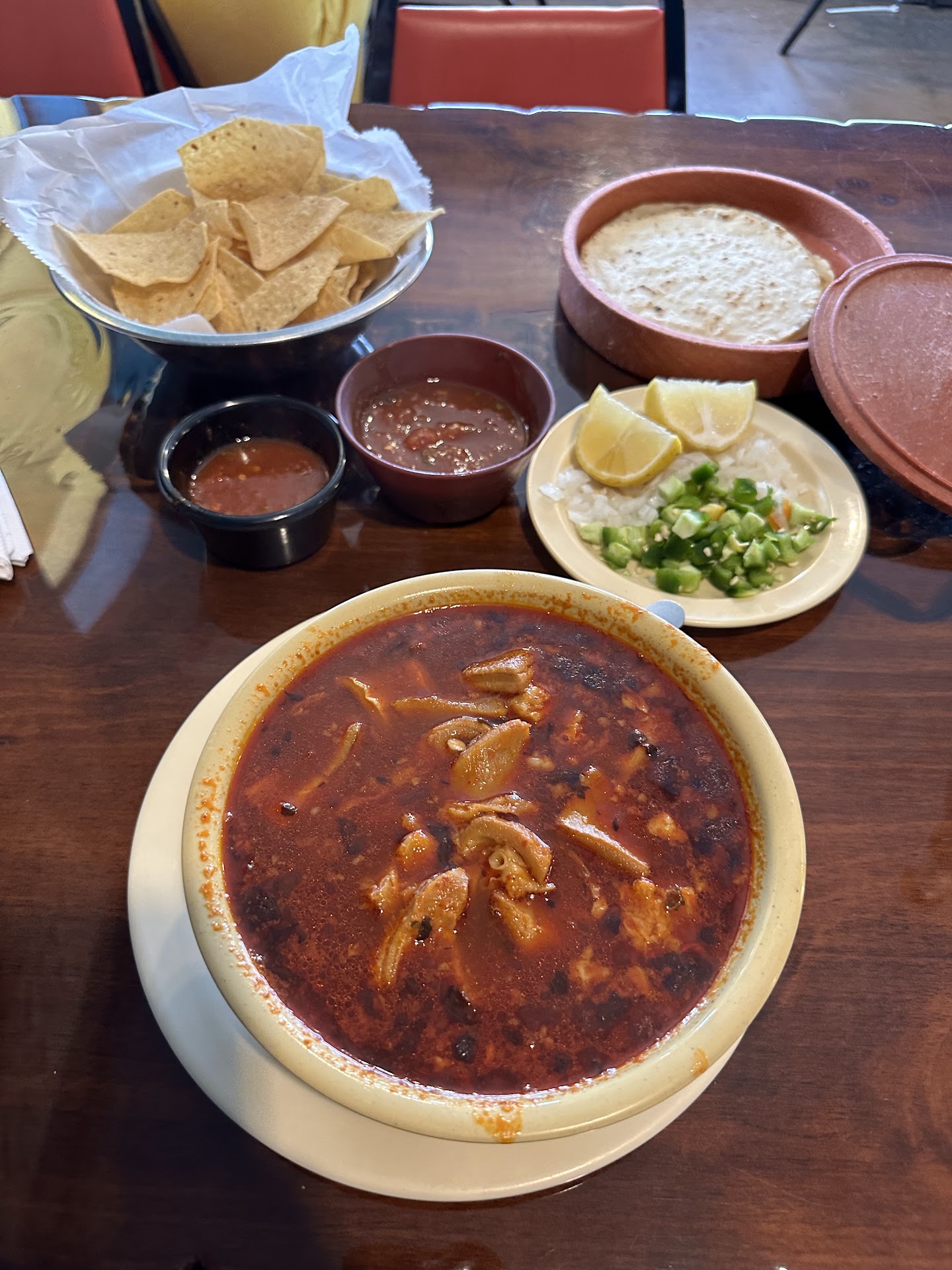 I ordered for take out around 1:00pm on a Wednesday I went to the one in Beltline Rd. In Carrollton . . And it's not the same like it used to be 7 yrs. Ago Food was flavorful and better service .. I go in and it's raining cats and dogs put my order in because their phone is not working to call my order in. I walk up to the cashier desk and no one there, I have to scoot to the side for waitresses to see me ... She finally comes over and asks if it is for here or to go and I said to go ... An $8.50 special came out to almost $20 due to a large Horchata which also does not taste the same like it used to, and extra flour tortillas which I regret getting, in a word everyone can understand chiclosas and undercooked ... (Chiclosas very chewy like gum) Well I know one place I won't be spending my money from here on is Tipico's ... Another Mexican restaurant that is across from them has way better food and their drinks are not almost $6.00 ... It's 1/2 the price for way better tasting aguas and for the same amount. Sorry but this food and place is not the same like...