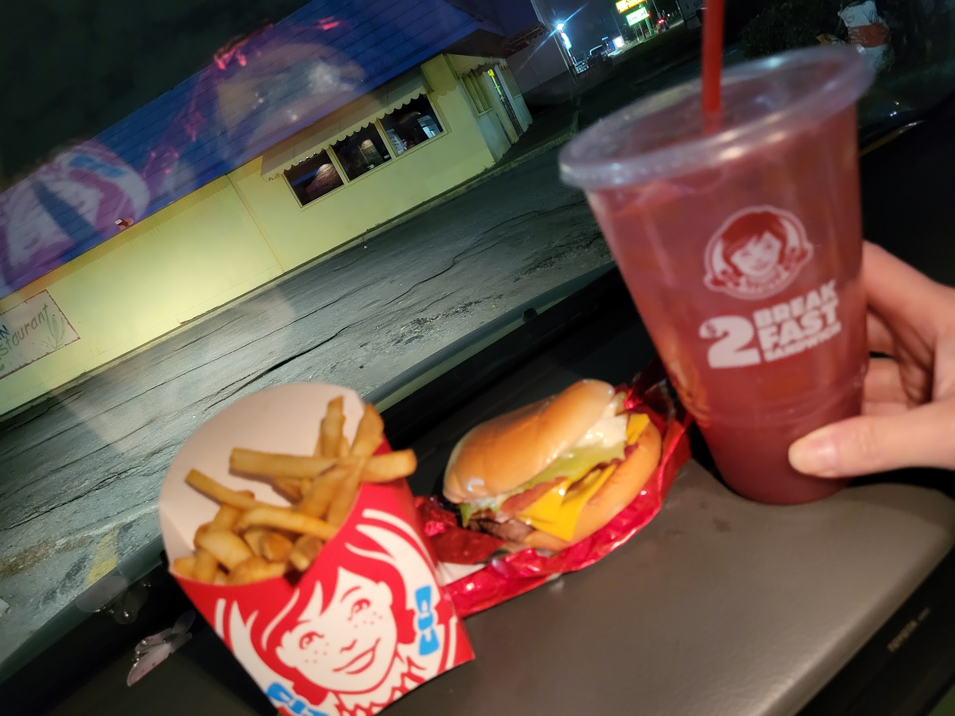 Ā Ā Ā Read moreOne phrase came to mind on my recent trip for a late night snack. OK Wendys, "Where's the Beef?" ( man I miss those commercials. ) Anyway... I don't mind that the SON of baconator is small. I order it because it's small.. I think 3 bucks for it is a fair enough price. But 13$ for the combo. Shaking my head. I had planned to go to mc Donald's but the line was around the building .I didn't want to sit in that at 1145 at night. I stumbled across this wendys up the street and immediately started craving my favorite fast food burger. After placing my order in the drive through I heard the total and I immediately wanted to cancel. But I'm hungry and the lady seemed nice so I begrudgingly handed over my hard earned money. Iwas asked to pull ahead but within hyatt a minute or two my food was delivered. The second I grabbed the burger from the bag I regretted spending so much. The Luke warm fries only added to my disappointment. The cashier returned quickly with my Mayo that she had remembered as she was handing me my back and she returned inside to retrieve some. Thank you so much for not forgetting!!! The flavor of the burger did not disappoint and my raspberry tea...