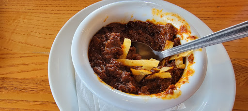 First, I was here for a staff meeting and one of our staff ordered a burger. The burger came out with a wad of hair in it. Not just a string, but a small hair ball. When we brought it up to the waiter (who was also the manager) he sent it back and got our staff member a new burger. The only downside is he charged us for 2 burgers. When we tried to fight it, he put his hands up and said, "I don't make the rules."