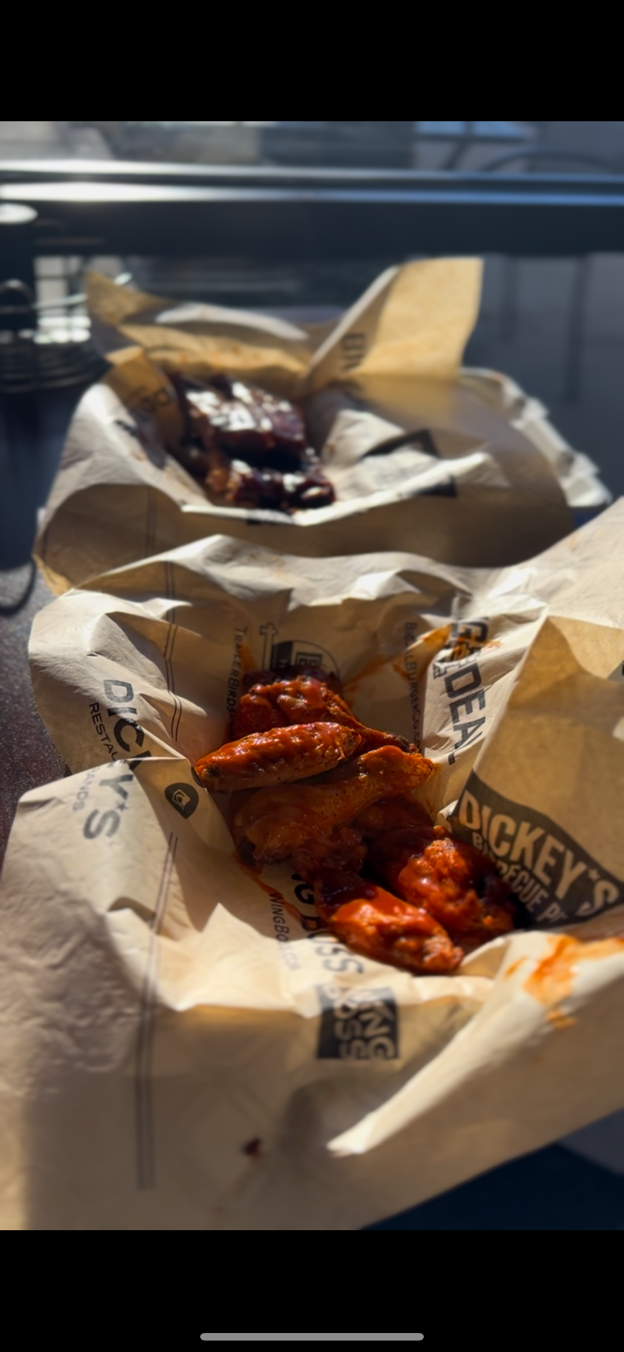 My brother in Burbank,CA area and I were talking on the phone. He was wanting BBQ and I told him about Dickeyâs and how it was one of my favorite BBQ places to go to eat. I explained that I always ordered the brisket and sausage as the 3 meat meal, with fried okra as my 2 sides. My husband and I werenât feeling too much for sausage this time and ordered all 3meats as brisket. Of course I ordered the 2 sides with okra and my husband was going to try the brisket chili as his 2 sides. We ordered the toast verses the roll. The gentleman that took our order had to step away. Another gentleman took over. He had started the toast and was slicing the meat. I understand with the economy that the prices would be more than the last time I ate there. I was always given generous portions of meat. With the brisket the fat was always cut off to not offset the weight. This time was some fatty slices. The meat was on the drier side and was tender enough. I asked the gentleman placing my meat on my tray, that I remembered more than that for a 3 meat plate. He explained that it was the amount showing on the paper for required ounces. He proceeded to serve the chili and it was dry. The container was smaller then I remembered and wasnât filled but 3/4 of the way. My husband had to add BBQ sauce to eat it. My okra was fine and was also smaller amount than I remembered. The original gentleman that took our order gave us a roll instead of the toast. Knowing our order which he took in the first place. I reminded him of our order. He said that he would bring the toast to us, which he did. My husband was filling our drink when our toast was served. My husband came back to the table with our drink and a bag. I thought it was for my spices I purchased and any leftover containers. I apparently had the container of our toast out of his sight. He thought that it was our toast. A customer came in looking for his order. The 2 employees were wondering where they had placed the order. My husband, thought was our toast, looked in the bag and saw it was the manâs order. He took the order to the counter, to the employee that handed it to him. The employees didnât make a new order for this customer, and gave the customer the bag my husband returned at the same time. How would the employee know that we hadnât been in that container? The tables were dirty and it looked like the floors had not been mopped in quite some time. This was not the restaurant or dream team I was accustomed to being served by more properly. Luckily we found 1 of 2 tables clean or at least no food on them. The store was not busy and only one other family was there besides us. My neighbor had said to me the same things I mentioned when I asked if he ate there lately. I tried to load the pictures I took but apparently I canât load them here, so I guess you will have to take my word for it. The whole restaurant was in a disarray even with the cutlery they did not realize was empty, until my husband explained there wasnât any forks and needed one. Sorry not my fav BBQ restaurant anymore. especially driving almost 45...