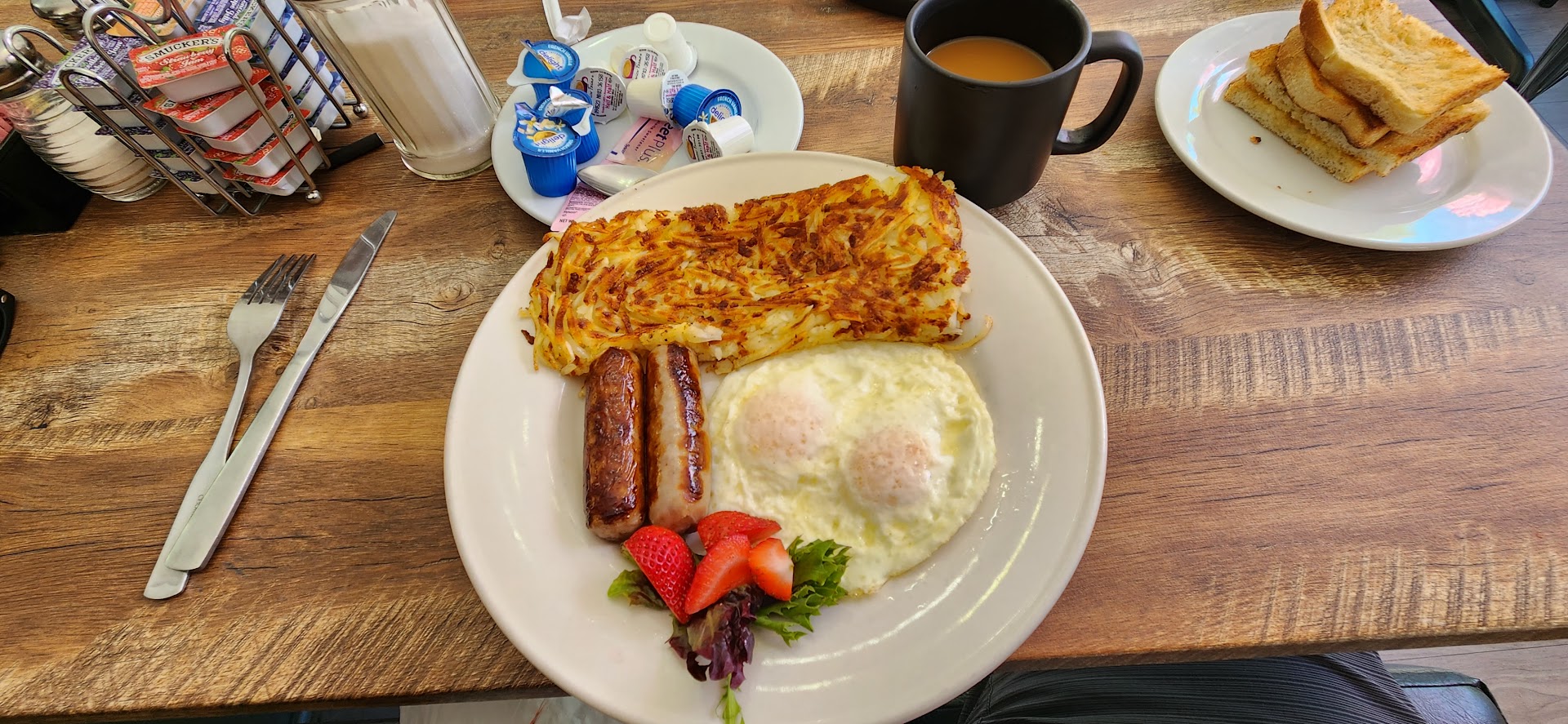 Update My daughter and I got the opportunity to have breakfast here 2 weeks in a row. I got the basic breakfast couple eggs hash browns and sausage. My daughter got the Apple pancakes. First of all let me say when we received our breakfast our food came out hot and fresh. It was great. The second time we went in I ordered the same thing but my daughter ordered the oatmeal. The oatmeal was delicious. A lot of fresh fruit on the plate also. Then again my breakfast was spectacular. It's not very often you can go into a restaurant and get a basic breakfast and it's hot and fresh. Usually the sausage is oily or you get the hash browns in their cool and your eggs are overcooked. Not here. Would definitely recommend. As a matter of fact we're going to go back. I've included...