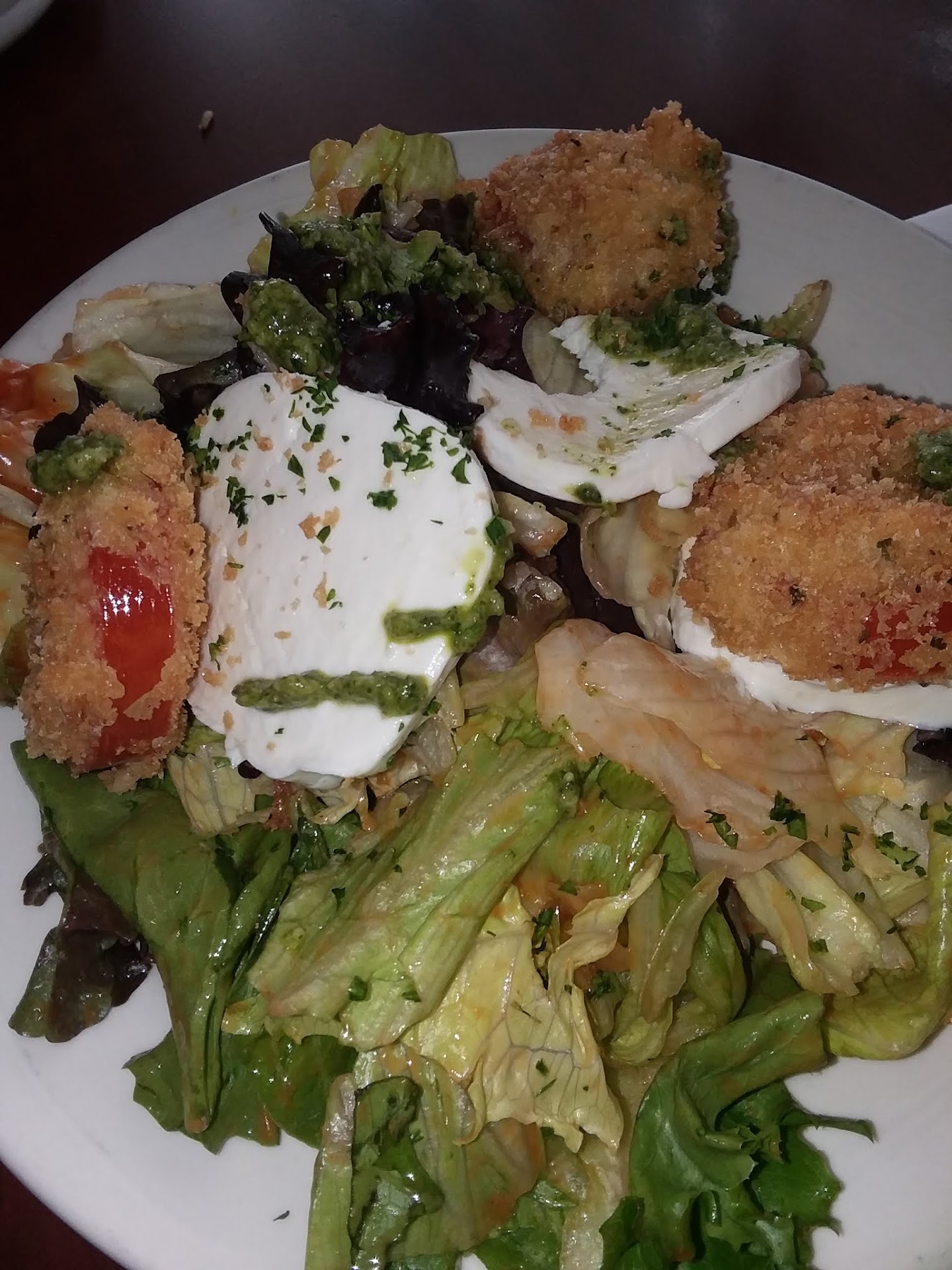 Read moreThe place was quaint and casual no need to dress up. The food was pretty good but we had a few issues with our order. We ordered the calamari appetizer which the waitress repeated our order and then kept pushing to order our entrée which we wanted to wait until after the appetizer. She brought it out which wound up being the artichoke fritas and then made the excuse it was for another table but then we still had to wait 10 minutes for our calamari so she must have ordered wrong. For dinner I ordered the polla di vincci and it was supposed to on a bed of crispy polenta. When I received my dinner it was just the chicken with sauce and a small side of vegetables with a few pesto pasta pieces. I was not able to find the waitress nor did she come back to ask how our dinner is so I had to flag down the hostess who said I will find your waitress. When she finally came over and I asked about it she said oh I was waiting for it let me go check which she promptly returned to state that "oh they are out of the polenta". She didn't offer to ask if I wanted a side of pasta instead or did she say something upfront when I ordered the chicken that they were out of it nor did the kitchen tell her they were out of it again I would have then liked it served over pasta for the sauce not a big chunk of chicken and some sauce. I would have been nice if the kitchen communicated to the waitress so I could have either decided I still wanted the dish or chose a second option. Needless to say she only discounted my meal $4 for not having polenta. I am not looking for a free meal it would have been nice if they said something after I ordered it or prior to been served. This is why I am only giving it 3 stars overall. The food flavor was good just the experience...