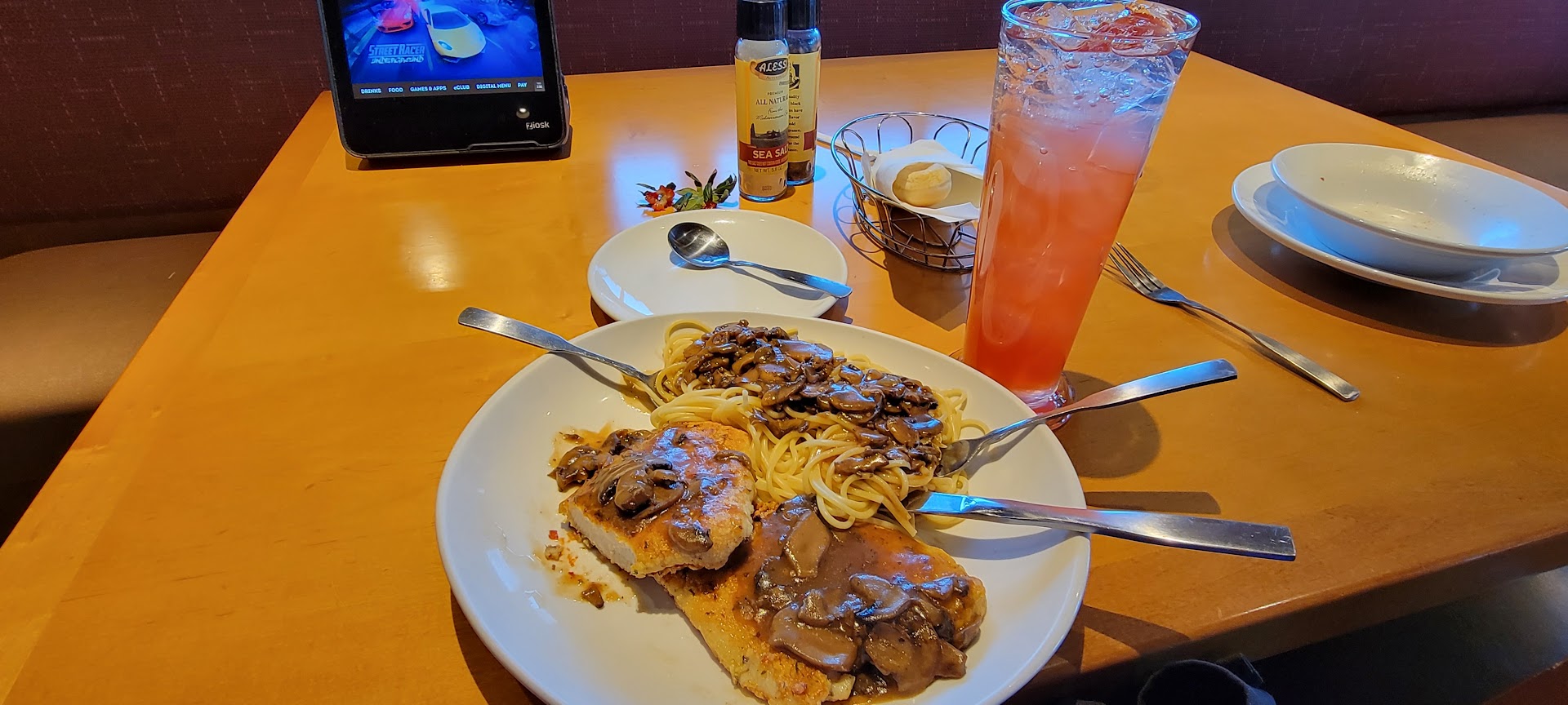 They made my requested substitute without any protest. It normally comes with Alfredo and I requested instead some spaghetti pasta with some more of the Marsala sauce on it.