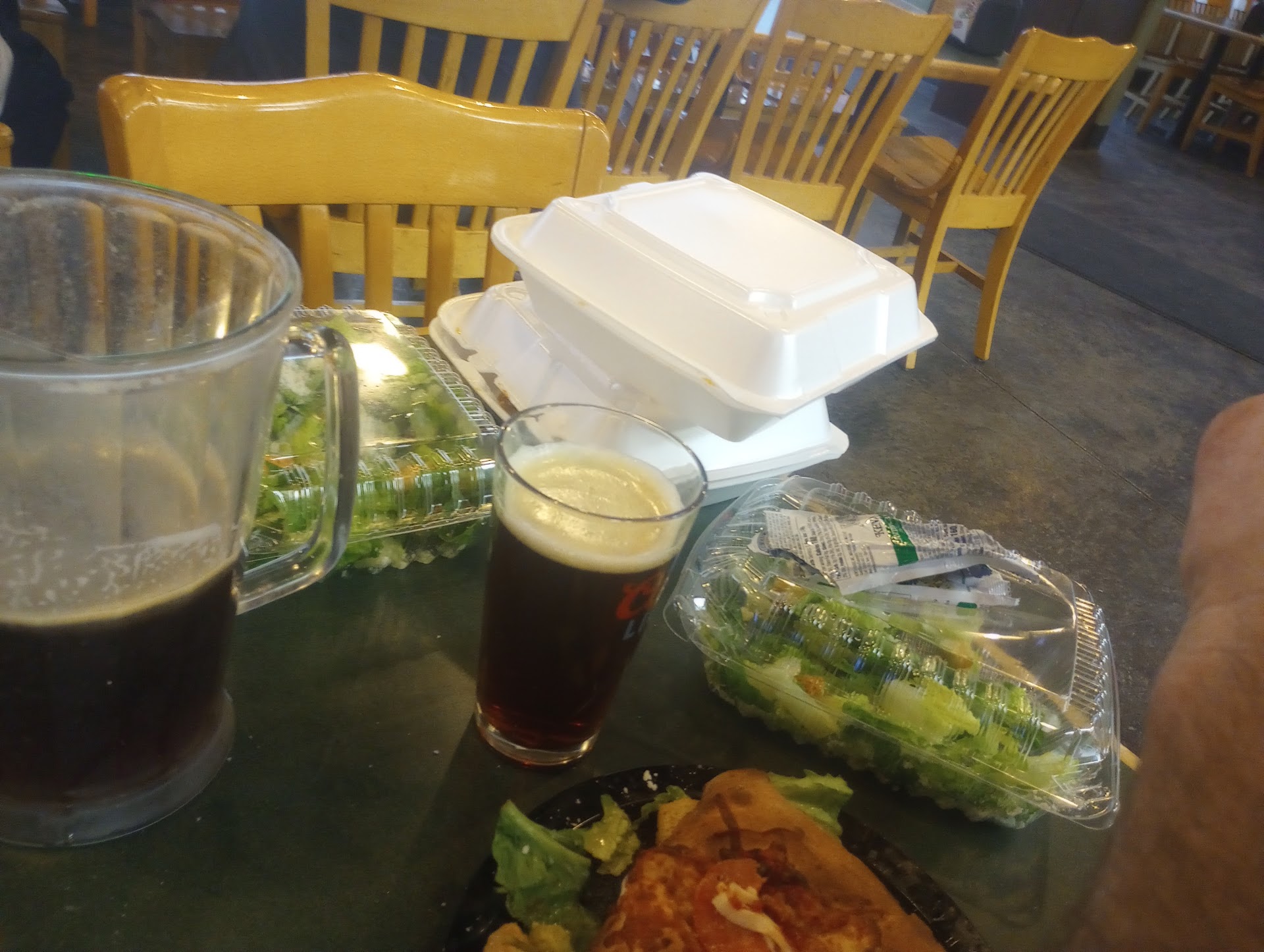 A nice man greeted our table eventually and asked if he could clean the crumbs off, yes please! Then we asked if there was any other pizza available that was warm and fresh and he said no, we just had our rush and so that's what's left. We aren't making any more. We asked if he could make a half and half and he said he would see what he could do but never came back and we were simply ignored from then on. Lovely service.