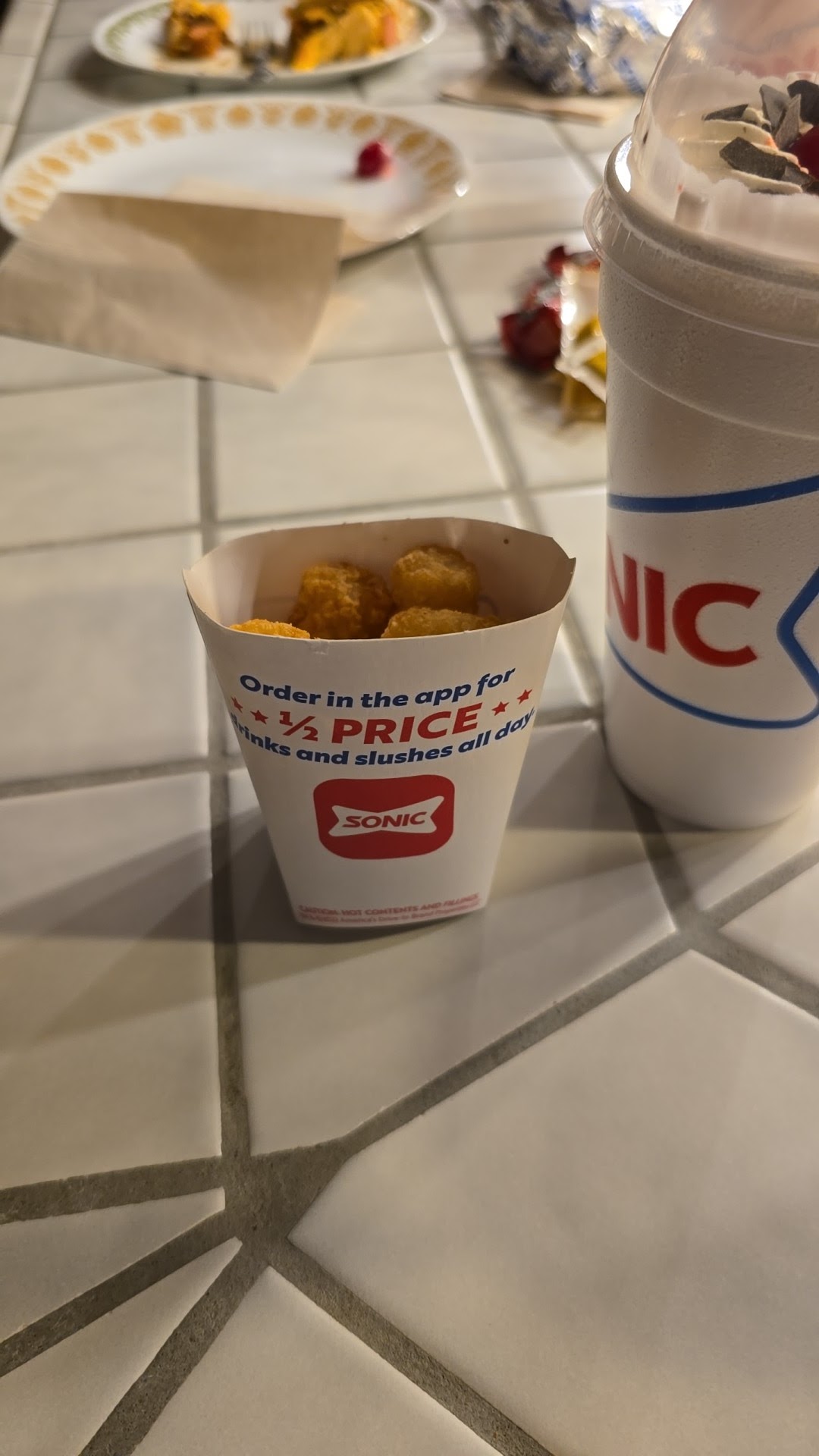 Food was fine, typical Sonic food, no complaints. Just reviewing my...