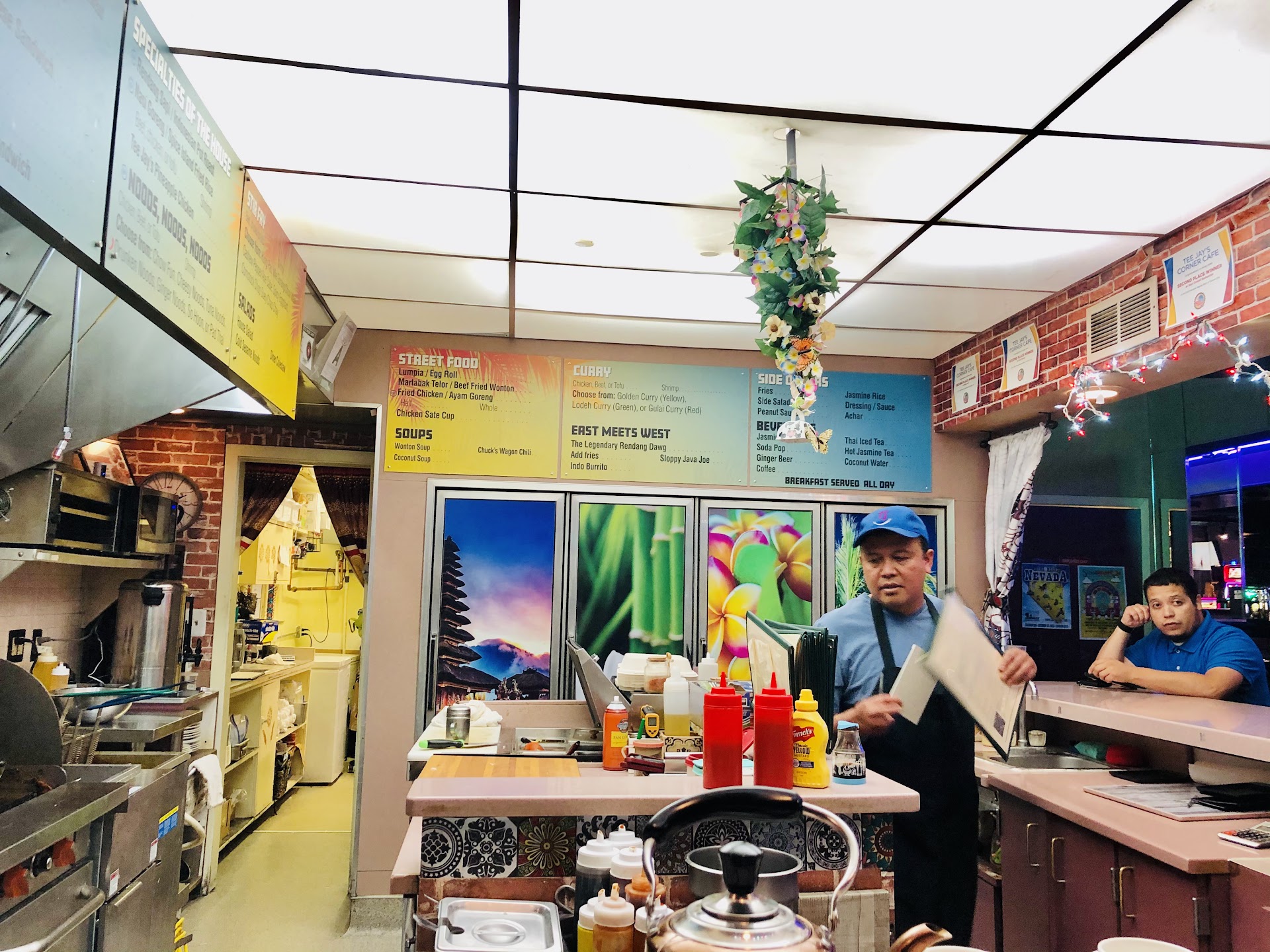 Tee Jays makes food for you behind a small L shaped Formica counter top firmly ensconced within the jangling confines of Cacti’s Jacks Casino. Jactas Cacks has seen better days, but that is part of the charm. Like a diamond in the rough, Tee Jays menu is both southeast Asian (Indonesian to be precise) and straight up Nevada Americana. Like burgers and sports? Their burgers are outstanding. They have a TV on the wall. Bliss. How about a nice curry? Tee Jays makes fresh curry with unbelievably perfect taste and spices, and vegetables so fresh they beg for mercy when you when you eat them. Ignore their cries….