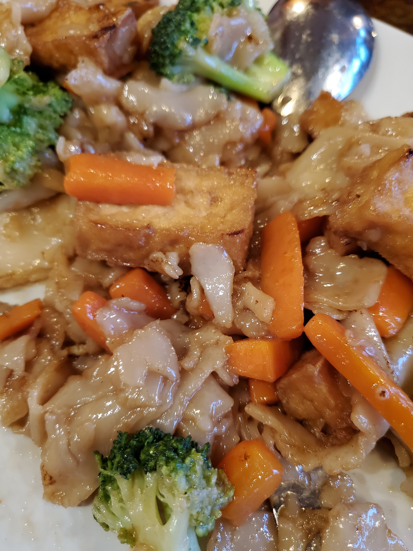 Read moreThe food here is pretty good, the decor is beautiful, and it's in a nice downtown location. As with most Thai restaurants, I have a favorite. It is either Pad Thai or Pad See Eew. Today I couldn't remember which I prefer, so I got both Chicken and Shrimp Pad Thai (no green onions) and Chicken Pad See Eew, and my mom got Shrimp Pad Thai. Now I know which I prefer, it's Pad See Eew from The Basil. The Pad See Eew noodles are tender and delicious, and the chicken is too. The flavor is great, and the amount of meat, broccoli, and carrots is perfect. They don't skimp on meat or load it with veggies. When there are too many carrots it seems like a filler to me. The Pad Thai is good, but the flavor is almost a little bit like ketchup, which is kind of strange. The chicken is delicious and tender, and the shrimp is deveined beautifully. Note: my Pad Thai, chicken and shrimp, came with lots of chicken and four shrimp. My mom's Pad Thai, shrimp, came with lots of shrimp and some tofu too. I've ordered the mango roll in the past, but I probably wouldn't get it again. Too bad they don't have a Shrimp Spring Roll. The prices are a dollar or two more than I would have expected, but I guess a downtown location has high rent. I would go here again.