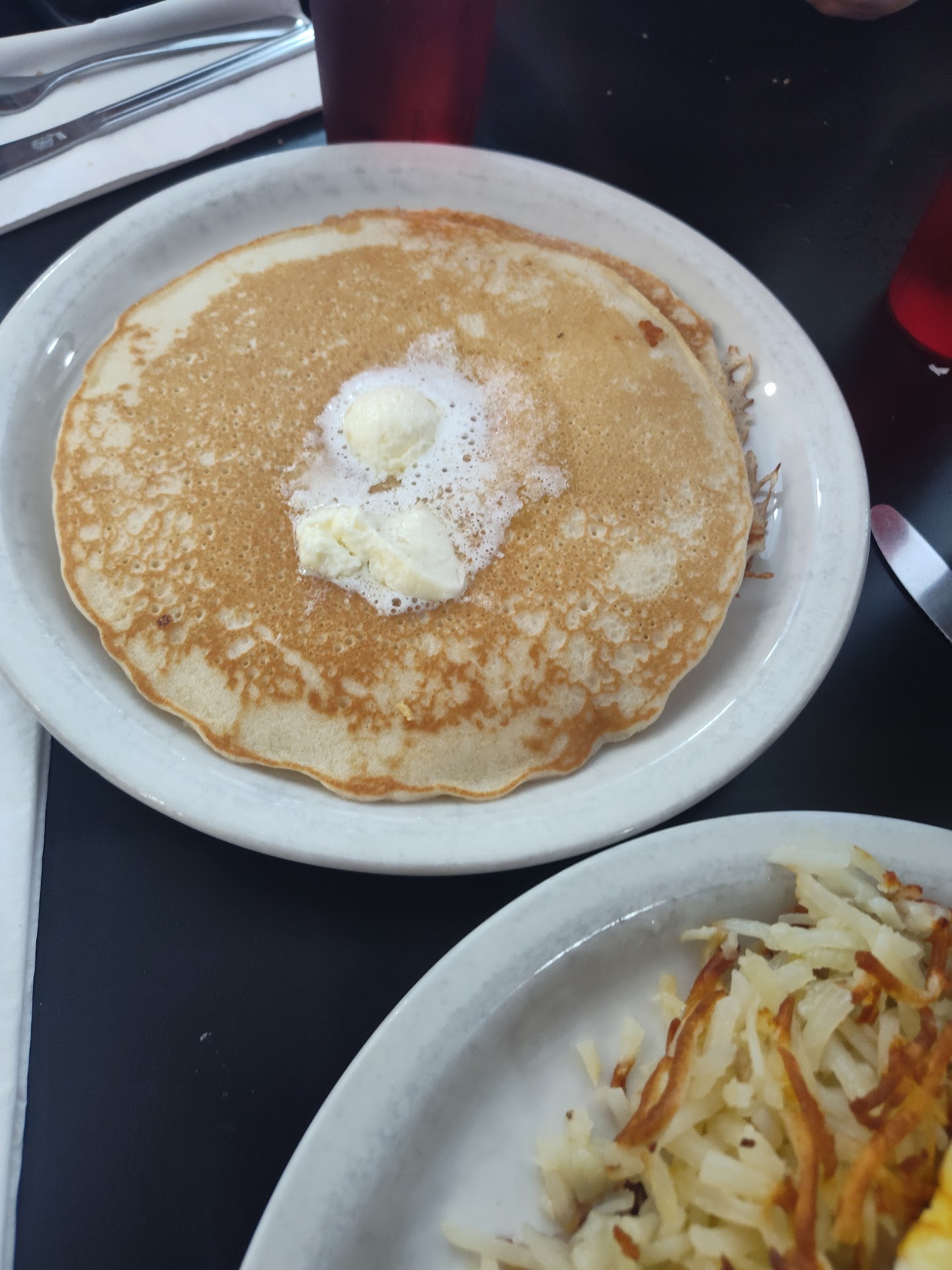 Read moreThis is my go to breakfast stop in town! The food here is wonderful, the portions are big and the service is super friendly and fast. Come here more than once and you're pretty much a local. While it is the same Red Hut which the same diner charm and feel as the ones you can find up in Tahoe and Reno (and I've been to them all), this is without question my favorite. Typically, my wife will get a waffle combo and with their amazing bacon that's always cooked perfect and I typically get their Rosti or chicken fried steak and they're so good, I always have a hard time choosing which one to get. Of course, they do have daily specials and if I'm here on a Tuesday, the eggs benedict is outstanding and if I'm here on a Thursday, the corned beef hash cooked with a crispy shell and eggs over medium served with tomato slices is to die for. If you do this, I would highly recommend it with english muffins and eat it all together as an open face sandwich. Of course, lunches here a great too and their burgers are delicious. If you pay with cash and you'll get a discount. I should note that it can get pretty busy on the weekends especially on a Sunday after the crowds get out of church so plan accordingly. If you're a big group, there is a room in the back that can accommodate...