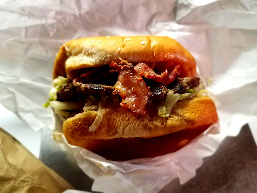 Read moreMy burger had the thinnest piece of hamburger meat that I've ever seen on it; so I added bacon(bacon was great though)and pastrami, and then some ketchup and ranch for the dryness (desert dry)of the burger. This doctoring up made the burger taste pretty good, but the issue is that I had to do all of that to make it "fabulous" :-/. The zucchini fries were pretty good though. The pastrami sandwich on the other hand was the complete opposite of my burger, it was VERY meaty. The bathroom was horrible, so gross, sh!tty toilet, and tissue everywhere. I'm sure it's that way because they let anybody walk up in there to use the restroom. I saw 3 homeless people walk in while I was there, 2 walked out and one just found a booth and went to sleep. There was some pros, mostly cons in my opinion, so it's a two-star...
