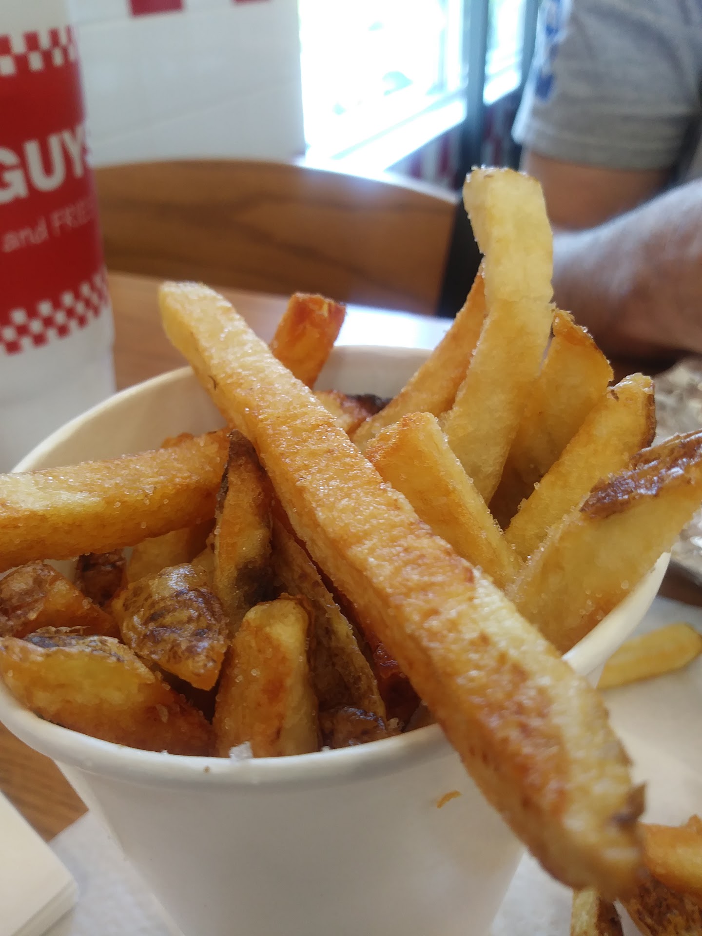 ย ย ย Read moreIt's been a couple of years since we ate at 5 Guys... And this trip was a good reminder why... In the past 5 Guys burgers were out-freakin-standing, but now, it seems that they are just good enough to be mediocre'ish... So they pull 3 stars for me... And, yes, you still get a truckload of fries, but that doesn't make the trip worthwhile... They've always been more expensive than I thought they were worth... And now with the economy tanking, and, believe me, I understand the inflation disaster, it just seems like,on top of the price hikes, the quality of the food is really slipping... If you're a fan of 5G, then, by all means, don't give my opinion any value... I just can't see spending almost $40 on even a semi-regular basis for my wife & I to each get just a burger, fries & drink... I think, for that much for one meal, I'll be going to the store & get a couple of NY Strips, some shrimp, a couple of potatoes to bake, and throw together a much...