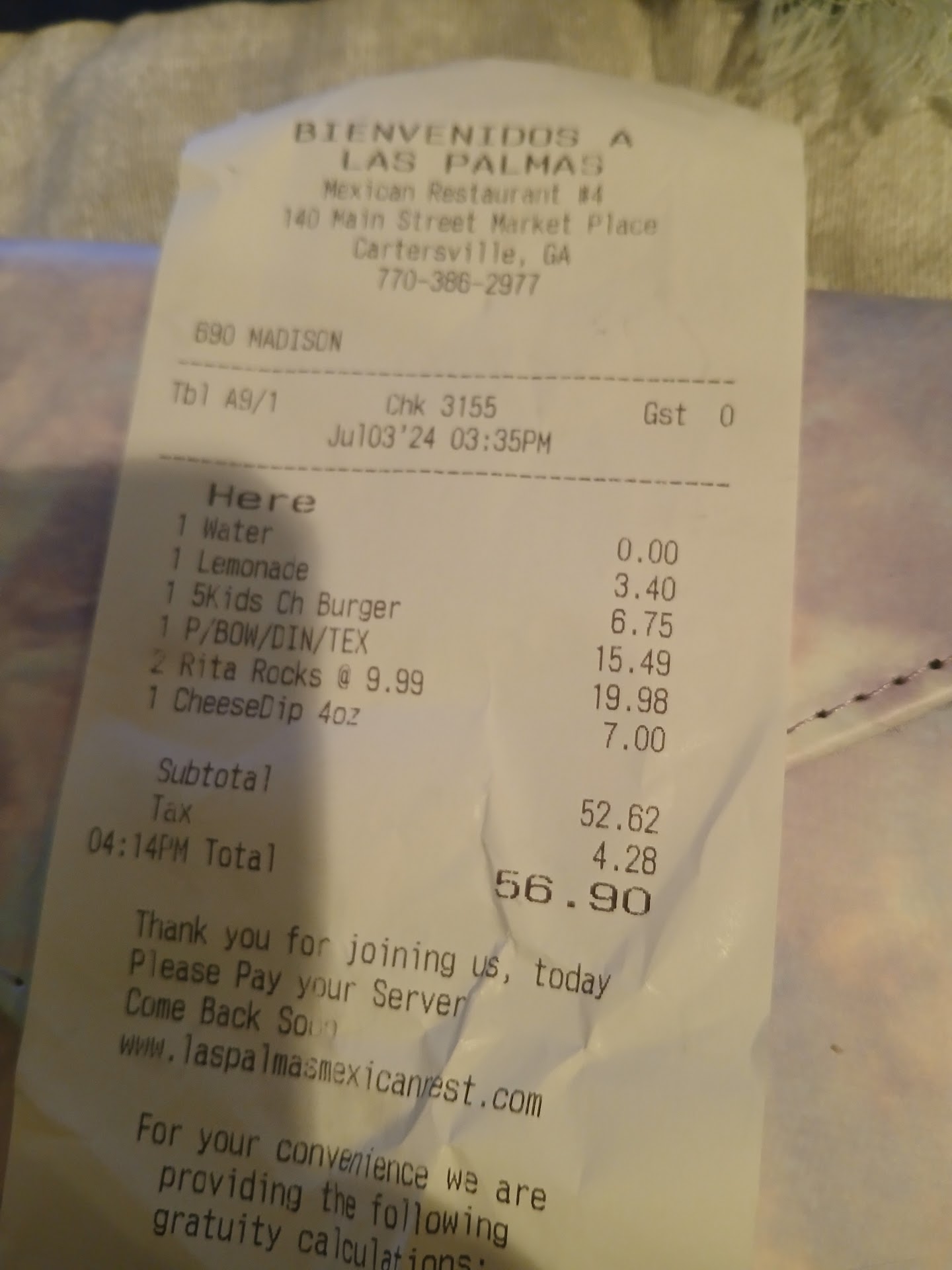 Los Palmas Mexican Restaurant in Cartersville, GA ,delivers a stellar dining experience with flavorful dishes, attentive service, and an impressive commitment to cleanliness.