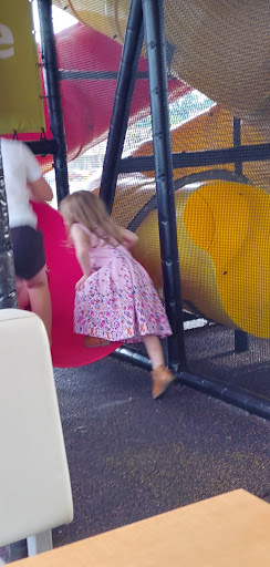 We even took a table tent number for them to bring us their food, but it seems like that was pointless. We sat in the kids area. Most of the tables were dirty and covered in food and grime. The restroom is out of service and blocked off by a trash can.