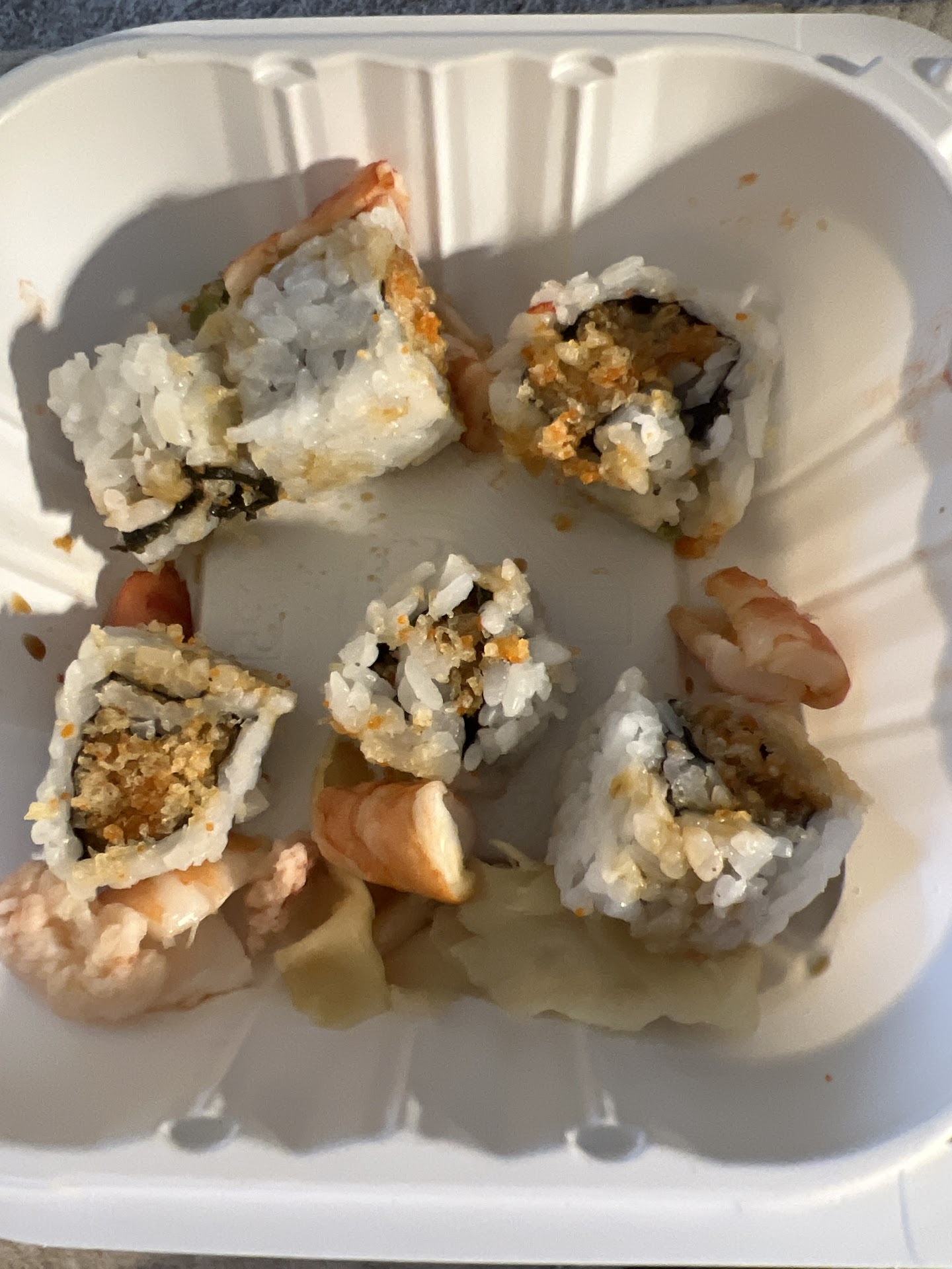 Read morePretty much everything my partner and I tasted was off compared for Asian food. The miso soup was mostly fine. The house salad might be fine, actually- but my partner got indigestion over the next couple hours and the salad, well, remained intact... a bit unusual. The fried rice had FAR too much butter, some egg, and no veggies. The General Tso's had zero spice, was slightly sweet, and overall bland. The Sweet & Sour Chicken was 'okay'. The white rice was...off. Can't really explain it, but we'd say "oily" or "buttery" We each had a sushi roll. The Yumi-Yumi (apparently pronounced "yummy-yummy"?!?) came drowned in sauce, and the Submarine roll came similarly drowned in Eel Sauce. The rolls themselves would've been fine, but why are we soaking them in a single flavor and eliminating the point of a sushi roll?