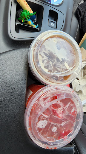 Read moreThe line at this starbucks is always super long!! If you wanted to park in the front lot, just forget about it because you won't be able to pull back out for the people in the drive thru line blocking the way. Just poor design and not enough space. They were out of the new pineapple drink when I came by around 12:30 pm, so I had to call my friend and ask her what else she wanted. I got her the strawberry acai with lemonade. And I got me and my boyfriend caramel machiattos. The lid for the strawberry acai was came off when I set the drink carrier down in my seat and spilled some. So I had to take it out of the carrier and try and fit 2 drinks in my cup holder and one in the door. I got the lid back on but then when I put it in the door, it came off again and got in my door. So I put it in the middle cup holder and it came off again but at least it was sitting in a level position. My friend had to put tape on it for it to stay on while...