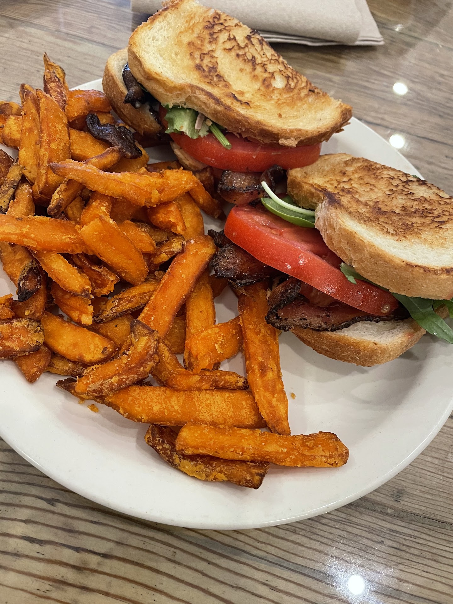 Read moreThis was a great place to get together with several old friends. You order at the register, great when everyone pays individually, and then food is brought to the table for you. The lady that took our order was very friendly and helpful with all our questions and even let me sample the jalapeno coleslaw to see if I thought it was to spicy. I ordered the chicken salad on a croissant. The chicken salad is great but the croissant is kinda dense and the bottom was hard. The jalapeno coleslaw is creamy, fresh and has a great flavor without being to spicy. (evidently this can vary depending on the person that prepares that's why she was happy to let me taste it first, which I think was excellent customer service!) The 2 fresh pickle slices they serve with the sandwich are fantastic and I wish I had gone back to get some to take home with me. I also tried the sweet potato tots and they're crispy, flavorful, not sweet, and were hot fresh out of the fryer. I highly recommend trying them plus they give you a big serving of them! I tried the fresh cut French fries too and they were hot fresh out of the fryer and just needed more salt in my opinion. I highly recommend this place and also enjoyed walking around going through the shops in...