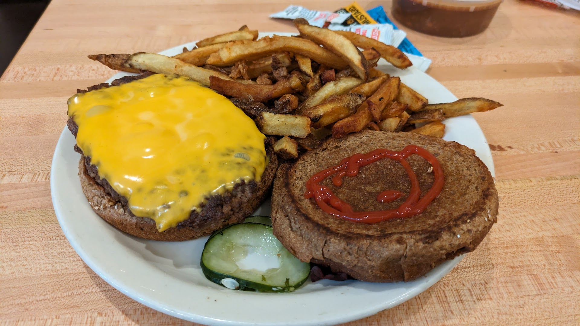 When the server got to me, I was already visibly irritated by her dismissing our mater familia and tersely asked her, “could you please get the lady a bag of chips and we’ll pay you cash for them,” and she at last did. Honestly had that not happened I probably would have overlooked the long wait and the albeit mediocre food, but c’mon, have some respect for an older lady, would ya?