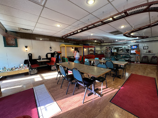 Overall i love the food but i can't handle the one server in particular. Unfortunately she is always the one there i have by chance once gotten someone else and everything was great. And the trains...