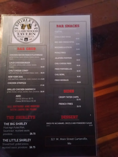 Read moreSuper nice owners! Treated us like fam! They are Kc Chiefs fans, so I guess they are fam! They had a band playing live tonight, The Prospectors, very very talented. Great music, friendly staff, cold drinks... had a good time at Shirley's Tavern. We will go back for sure and definitely if the Prospectors are playing! We can't wait to return for a...