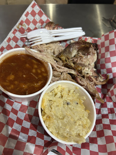Brisket sandwich was plain buns, no toasting nothing but grease and sogginess. Meat was lukewarm - not good, mac n cheese was clumpy, smelled off and again, lukewarm, I just immediately threw it away after smelling it. I was very hungry so I decided to eat the sandwich, that was a mistake. About the same flavor as drinking burger grease that's been over salted but cold- no smoky flavor at all. Sauces on the table were bland and tasted sour, probably expired. Been drinking pepto since. I don't see how this place has better than 2 stars, I have my...