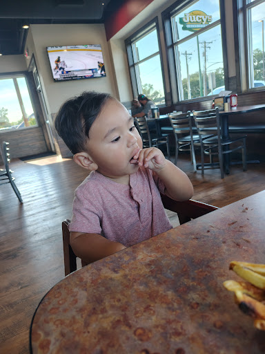Took a road trip from Louisiana and visited Jucy’s for the first time ever on yesterday. 10/10 across the board! I ordered the onion rings with the jr cheeseburger well dressed and baby the burger was soooo juicy, hot and fresh! The bun was slightly toasted on top and came with lettuce, pickles, mayo, mustard, tomato and cheese. The star of the show was the onion rings though. I know, I know, yall are thinking really? Were they that good?? YES. They were hot, seasoned to perfection and were fried just right, not too crunchy! The complimentary beans are also a great addition as well. If you go through drive though, just ask for a few sides of them and they’ll throw some in the bag. I took away one star because they switched my burger with my mom’s order so attention to detail still needs some work but overall we cannot wait to come back to try another...