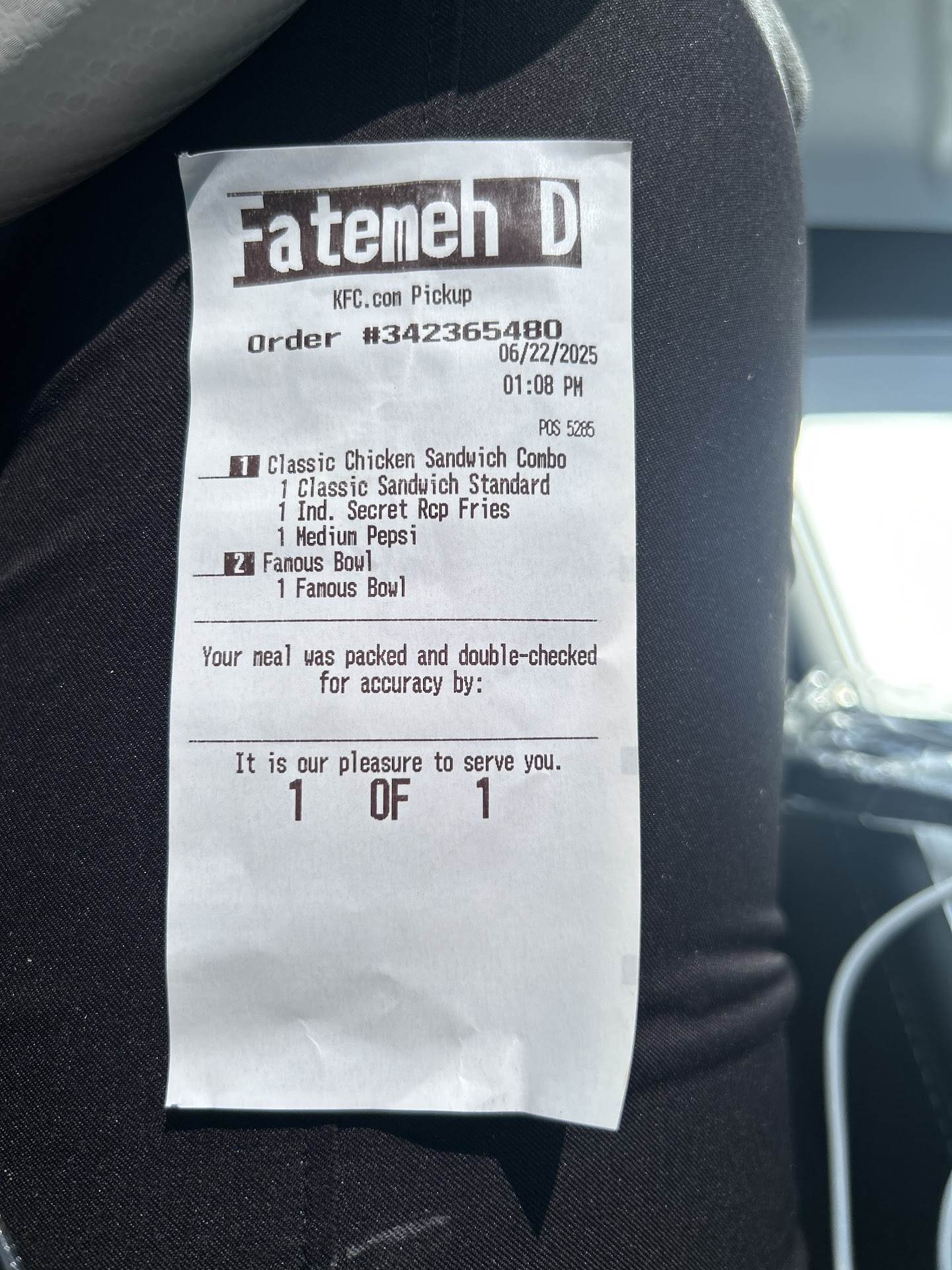 Read moreSo I went to KFC and ordered the 20.00 fill up and when I went to pull a piece of chicken out after everyone else was done eating this is what I found. YES A HAIR FRIED INTO THE CHICKEN BATTER! I take the chicken back up there and asked for the manager. Manager: How can I help you Me: Explained I came thru and ordered and when everyone was done eating I pulled this piece of chicken out and this is what I found. Manager: Ok what do you want me to do. I can't give you your money back without all the food. (Just explained everyone had eaten). Me: You are the manager and asking me what I want you to do. 🤔 I said well what do you feel is good customer satisfaction after finding this. Manager: ok hold on (starts to walk away) Me: If you are just replacing the piece of chicken I don't want it. (I have had enough hairy food for the day) Manager: Well I can't give you your money back without all the food. Me: Ok let me go back and gag all the employees so I can do that for you. Me: Its ok I don't need you to do anything. I will reach out to your corporate office and see if they can help with this. I leave. Call corporate. Awaiting a call back from...