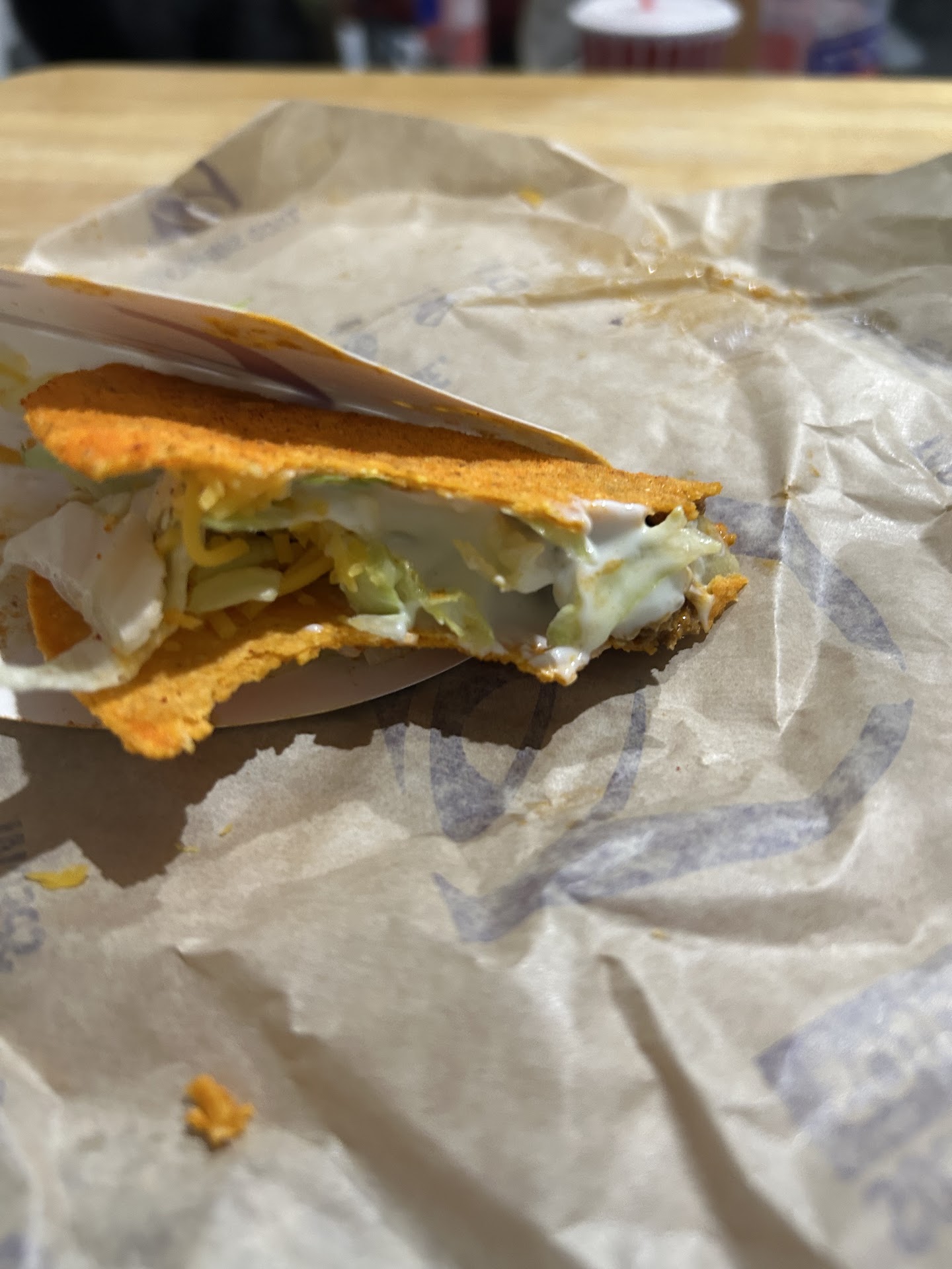 Read moreI'm not sure what you're expecting in a review about Taco Bell. Who seriously reads reviews of Taco Bell? The only difference I've ever noticed between different Taco Bell locations is the temperature of the food and the friendliness of staff. You know what you're getting when you go to Taco Bell. That's right, the same five ingredients wrapped up in a different way and given a different name. Well I can tell you this location had a friendly person working the drive through window. My crunch wrap was good. It was warm and not soggy. Everything we ordered was in the bag. It's been awhile since my last journey to Taco Bell and I was happy to see they have a vegetarian menu. Which means where meat would normally go they substitute black beans. I don't remember the vegetarian menu the last time I got fourth meal....