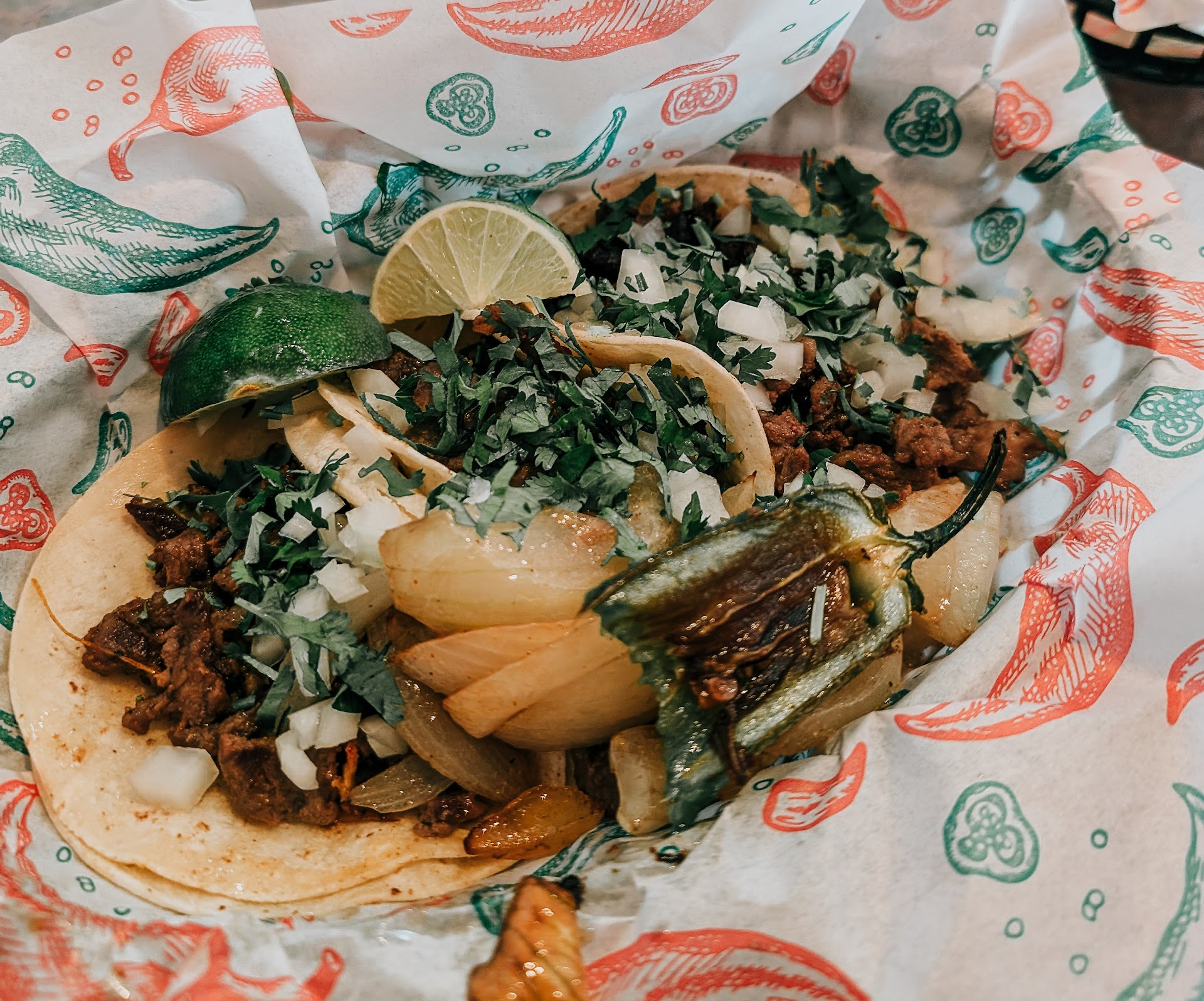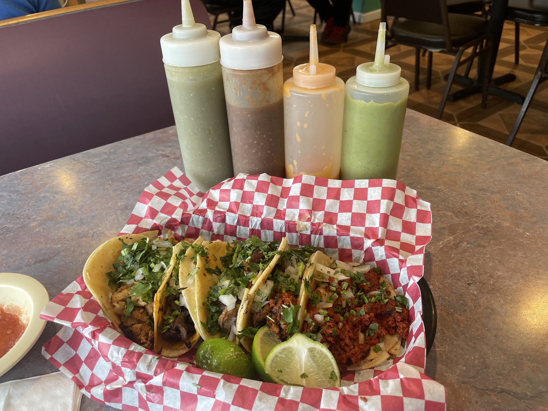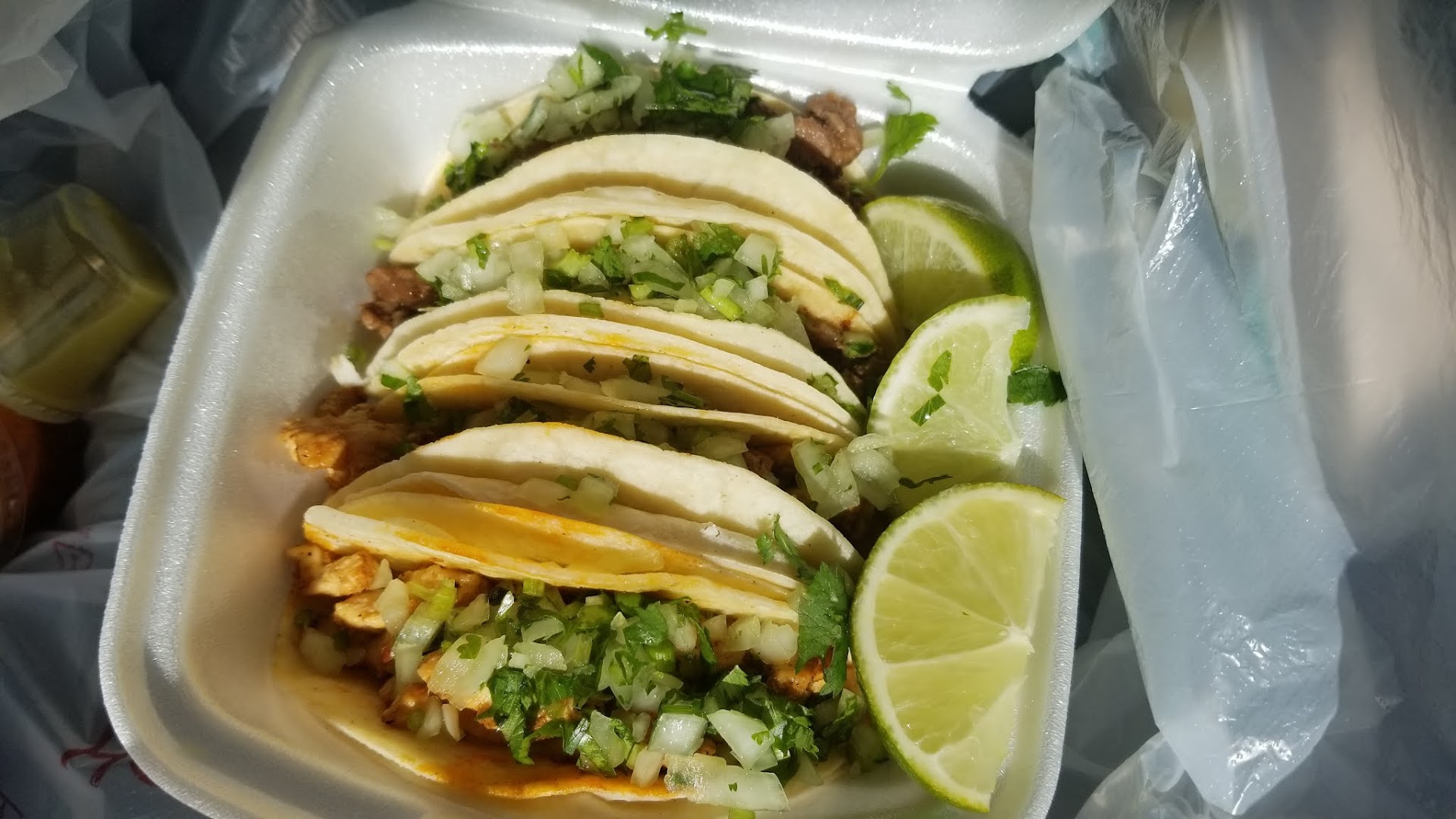 Recommended by Jeff next door and did not let me down! I ordered 2 beef and 2 chicken street tacos. Thursdays are Taco Thursdays and $1.50 each. I put the hot sauce, verde sauce and some lime juice on mine. I can't wait to go back and try everything else on the menu! If you are in the Carthage area, this is a must try!