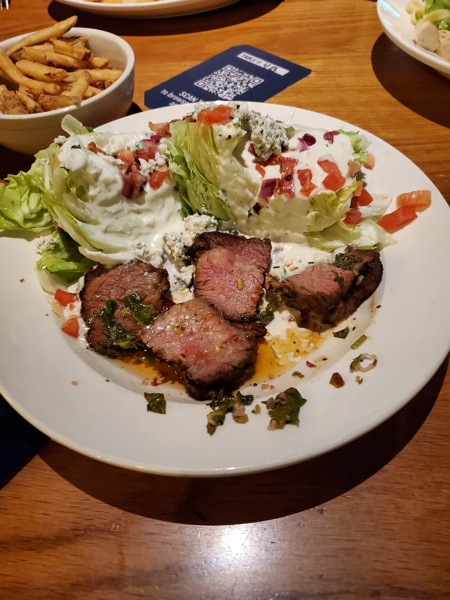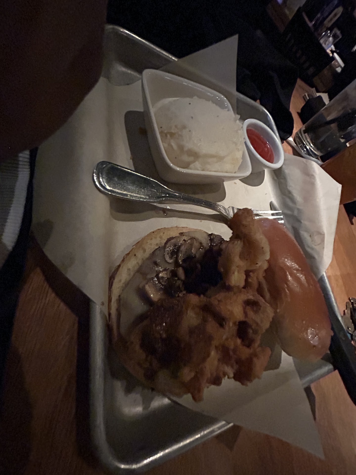 Ā Ā Ā Read moreMy domestic partner and I went for a lunch date on Feb. 23rd. We decided to try this place out because weāre always passing by. After my experience, we should have kept passing by. There was a little wait for the restaurant to be at maybe 20% capacity on a cool rainy Friday afternoon. It was not busy at all. We saw one waiter/host on our left he said heād be with us in a sec. The another waiter/host comes from the right. I think itās the bar area. In a kind of huffy voice he said sorry for the wait but one our hosts had to suddenly leave and that heād seat us. Once seated my domestic partner and I ordered water with lemon while we looked over the menu for appetizers. The air conditioning was up entirely too high for a rainy cool day. We settled for wings and fries. When I went to drink the water there was no straw. The waiter brought us straws. I went to drink the water and there was black stuff floating in the water. The waiter brought another water. At this point I was deducting from the tip. While looking over the appetizers I was also looking for my meal. I was interested in the trio something. It can with a steak and a choice of a side. I was going to get the shrimp scampi. I donāt remember the other options. But after all the other little things that were already wrong I decided to stay safe and got a crispy chicken sandwich with same type of spicy slaw. While waiting on the sandwich I decided I didnāt want to order a drink with my meal. I decided not to drink the water although replaced it didnāt come with lemon as requested. The wings were a 1 out of ten. We had to ask our waiter for napkins because none were provided on the table or with the food. Once I received my crispy chicken sandwich, it was clear the sandwich was fried to capacity. I had to ask for another top bun because the first bun was damaged. I flipped the chicken over and can see a portion of where the chicken wasnāt coated and it was fried like jerky. I began pulling off chunks of hard over fried batter. When I got the new bun top I took one bite of the sandwich and decided not to eat the rest. The fries were cold. The menu prices here do not match the quality of their food or customer service. I will not be returning to dine here. And Iām sure it wonāt hurt their pockets but a bad review whether itās via online or word of mouth is...