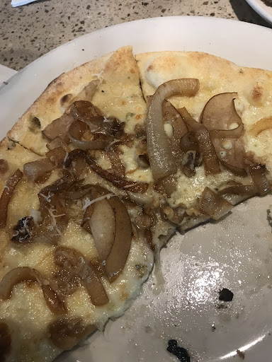 The good - The wings were amazing - Thai chili and rosemary garlic. When I arrived I could see the smoldering wood chunks in the oven, hence the bit of smokiness in my wings, but they didn’t last. I was so indecisive of what pizza I wanted, by the time I ordered it there was only wood ash, and what appeared to be a gas flame. Therefore my pizza didn’t have any noticeable wood smoke flavor; it was still delicious though. I had the pear Gorgonzola, I was worried the Gorgonzola would be too salty but it was the perfect combination. It was very cool watching them making the pizzas from my bar seat, the main pizza maker (pre oven) was very detail oriented. I didn’t see her pull out a phone once, and she took great care ensuring each pizza was perfect, she had long brown hair in a braid. Big compliments to her. Good craft beer and decent wine selection. The blue cheese for the wings was also amazing!!! It would have been superb with the buffalo sauce!!!