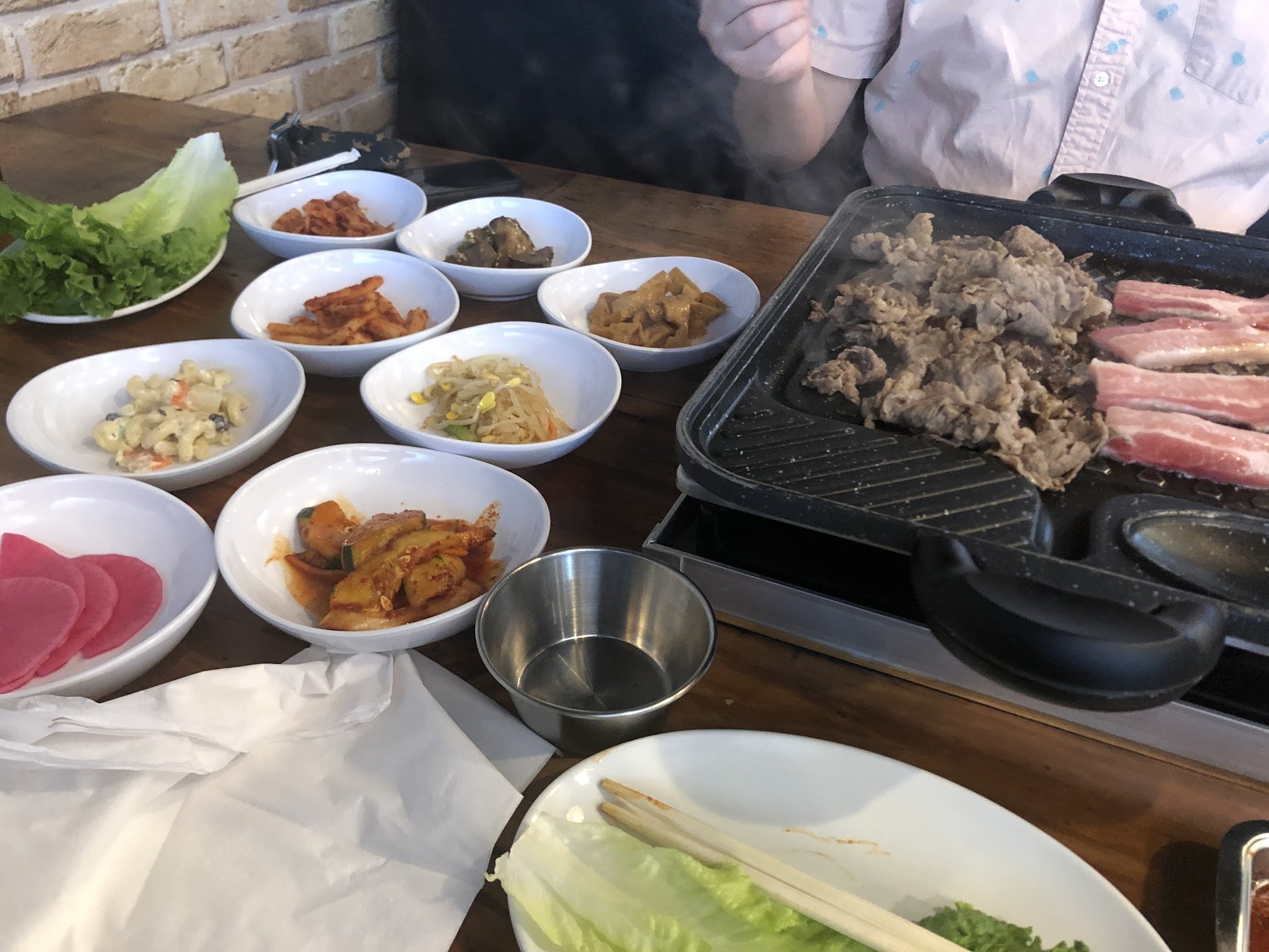 Sidenote: I’ve eaten at a lot of Korean bbq spots. The food was ok, not terrible. But the electric heaters were only a foot long. You could barely cook any amount of bbq on a electric plate that size in the hour they give you. Go...