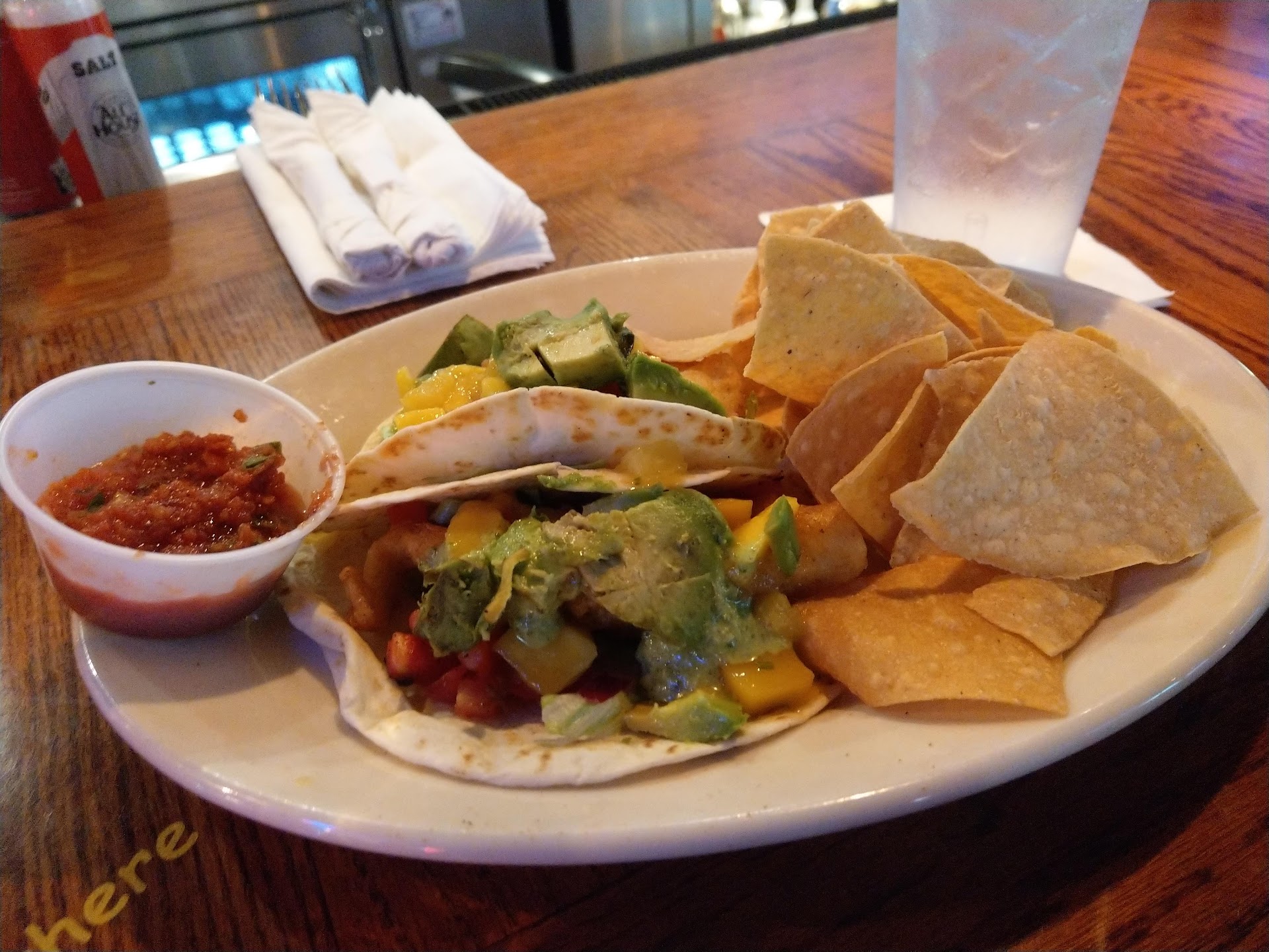 I started off ordering a margaritas, and of course being sold in a chain sports pub it was served in a tall glass rimmed with salt and a straw...
