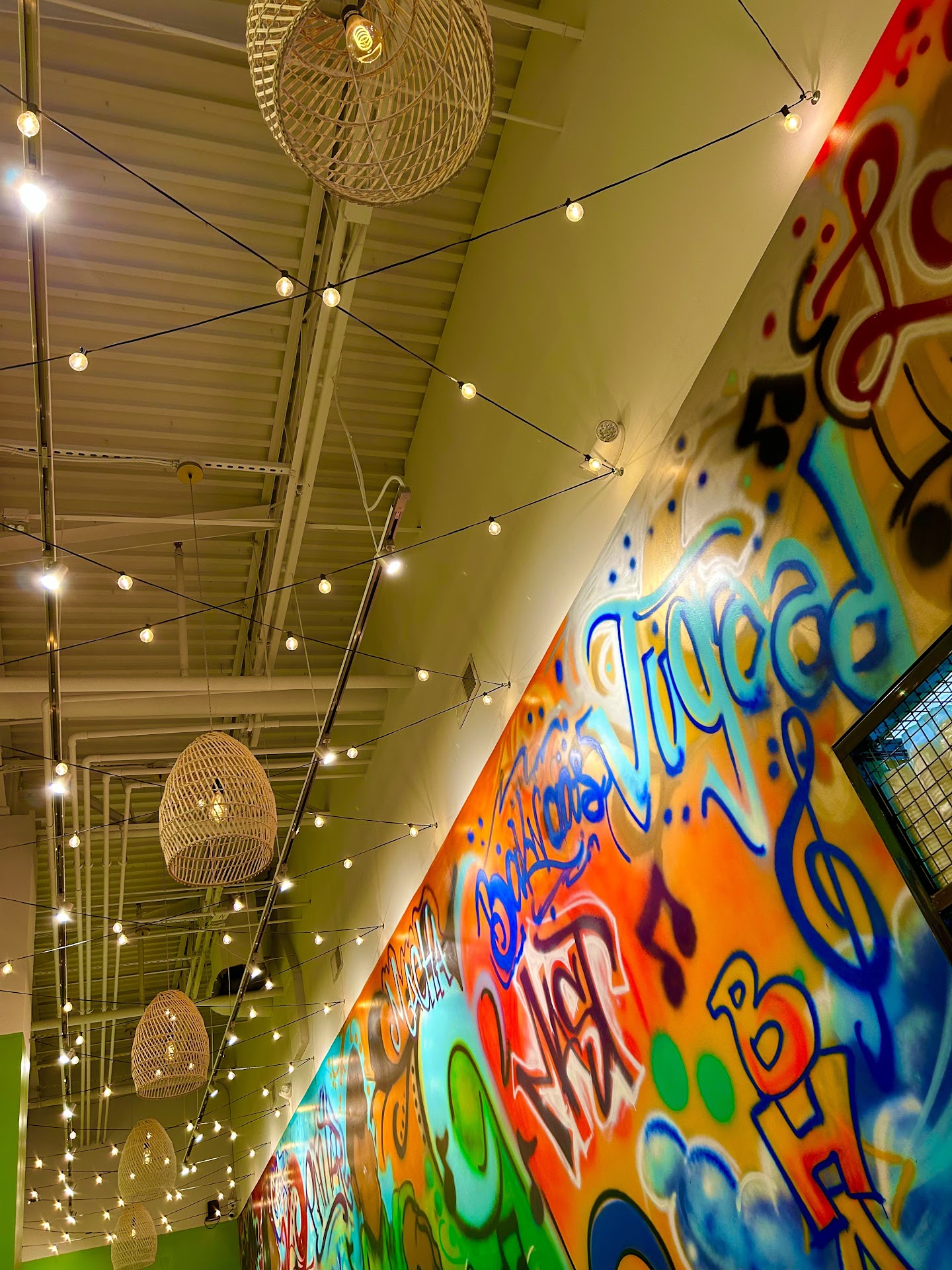 The decor is vibrant and trendy, with great music, but the food was a major letdown.