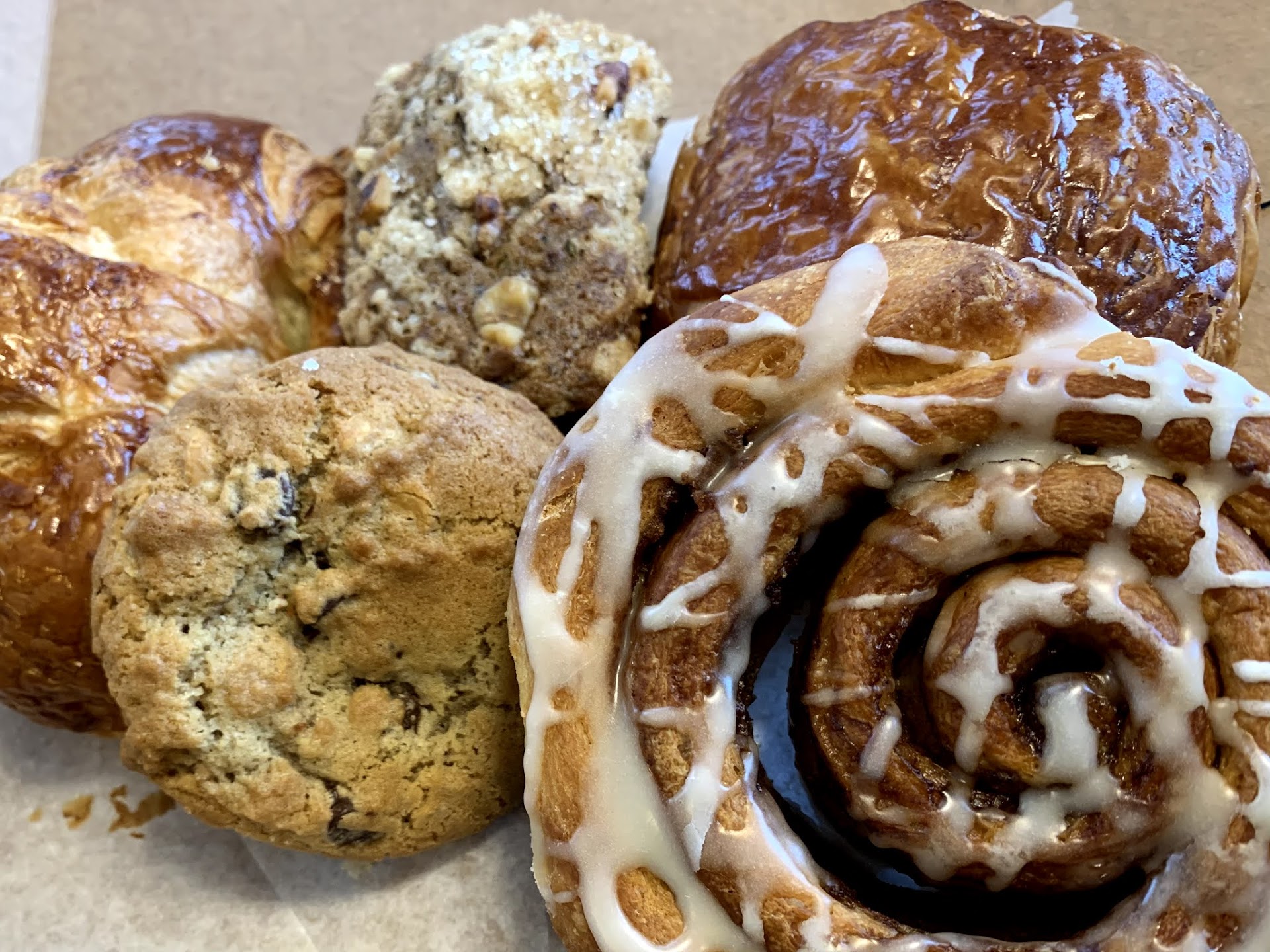 Read moreI popped in here to grab breakfast and weekend treats. Full disclosure, I was planning on going somewhere else, but that place had a line out the door. This was close by and on my way home, so it finally gave me a chance to check it out. I'm so glad I did! There is a decent amount of outdoor seating, which is great for eating out during the pandemic. Inside, the tables are spread apart, but on Saturday morning every table was full so it was a little too packed for my liking. All orders are placed at the counter, which makes it really easy to grab and go. The menu is great! An egg & cheese sandwich...on a croissant...with turkey bacon! I had to get that. It was good, but a little dry and the amount of filling wasn't enough for the size of the croissant. We also got several pastries. The plain croissant was really good - flaky and delicious. The chocolate one was also good, but need more chocolate in it and the chocolate could have been sweeter. The cinnamon roll was great - moist and sweet - and huge! The cookie of the day - chocolate chip butterscotch - was excellent...full of flavor and the right balance between chewy and crunchy. I wish I had gotten more! We got the walnut chocolate chip mini loaf for our toddlers. They need to gain weight and we thought this would be. good snack for them. However, my husband and I ended up eating instead...and we don't need any help gaining weight...... I can't wait to go back...
