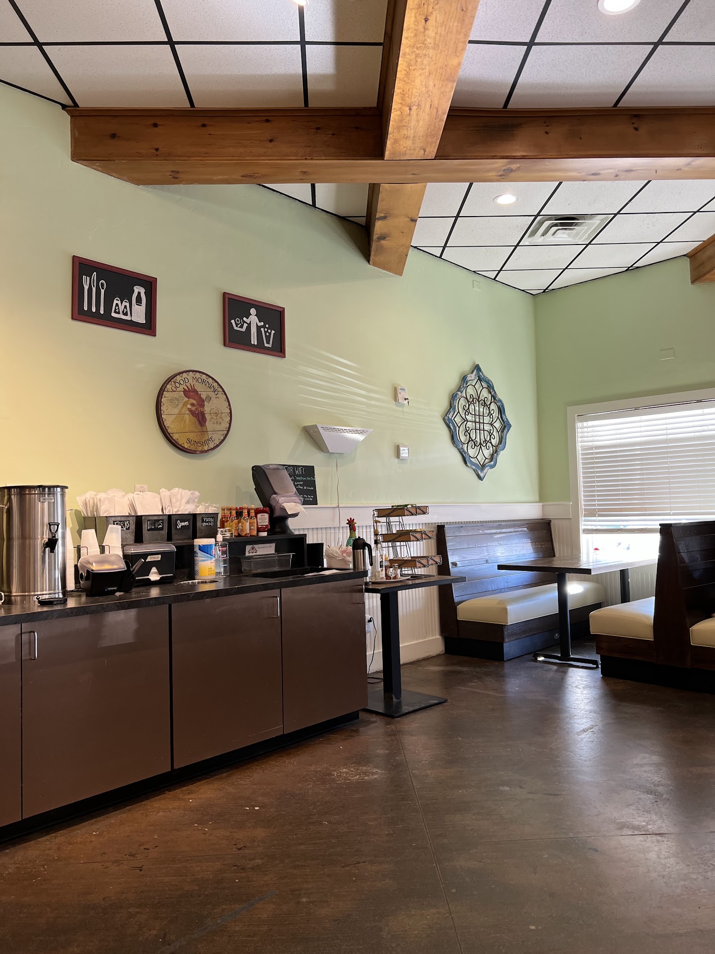 Update: The day after Christmas we dropped in with a family member who had never been here before. I've always enjoyed eating here as a sort of alternative to Panera or the like. Today, however, was not a warm fuzzy visit. I would recommend if you're planning to come within 1-1.5 hours before closing time, DON'T. Many places I've been to, especially ones that aren't open for long in a day, they are reasonable and leave drinks available for the customers. I've worked in restaurants before and am aware it really doesn't take much time to take out the soda machine nozzles and clean tea urns. Yet today, there was a rather abrupt woman who clearly wanted us gone so she closed up all the drinks well before we were done with our food. Everyone felt rushed and uncomfortable at the table from the looks and rudeness this employee exuded. For my relative's first time, it wasn't great. I've never had any issues of this sort with the staff before despite eating here close to closing before so I was pretty take aback. Next time within that last closing hour, we'll just go somewhere else 😝 Heck even Panera leaves drinks out for customers...