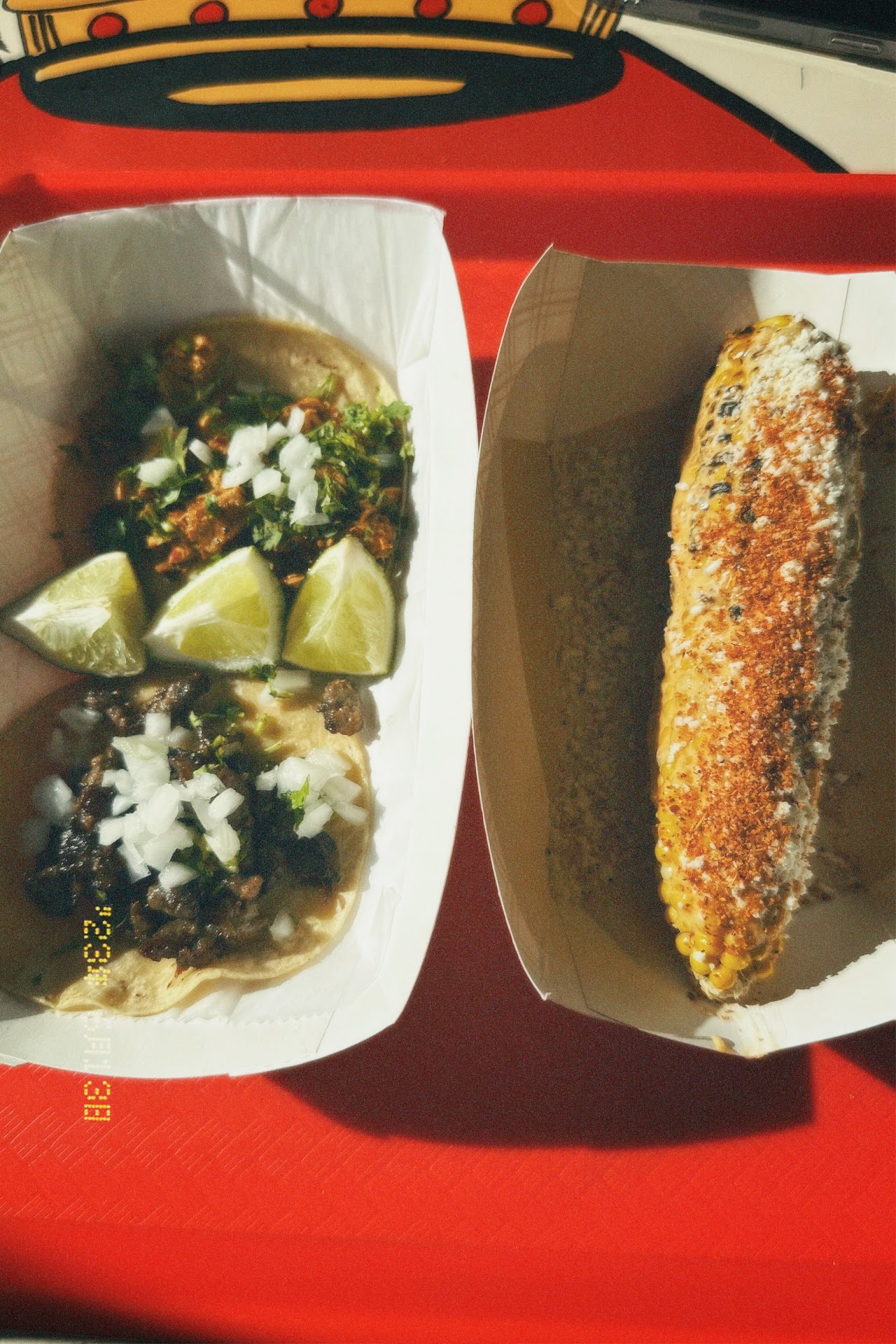 First and foremost, I have to mention the elote at Chido Tacos. It was simply outstanding! The charred corn was perfectly cooked, and the combination of creamy mayo, queso fresco , and zesty lime made it a truly irresistible treat. The flavors were well-balanced and the elote was bursting with authentic Mexican flair.