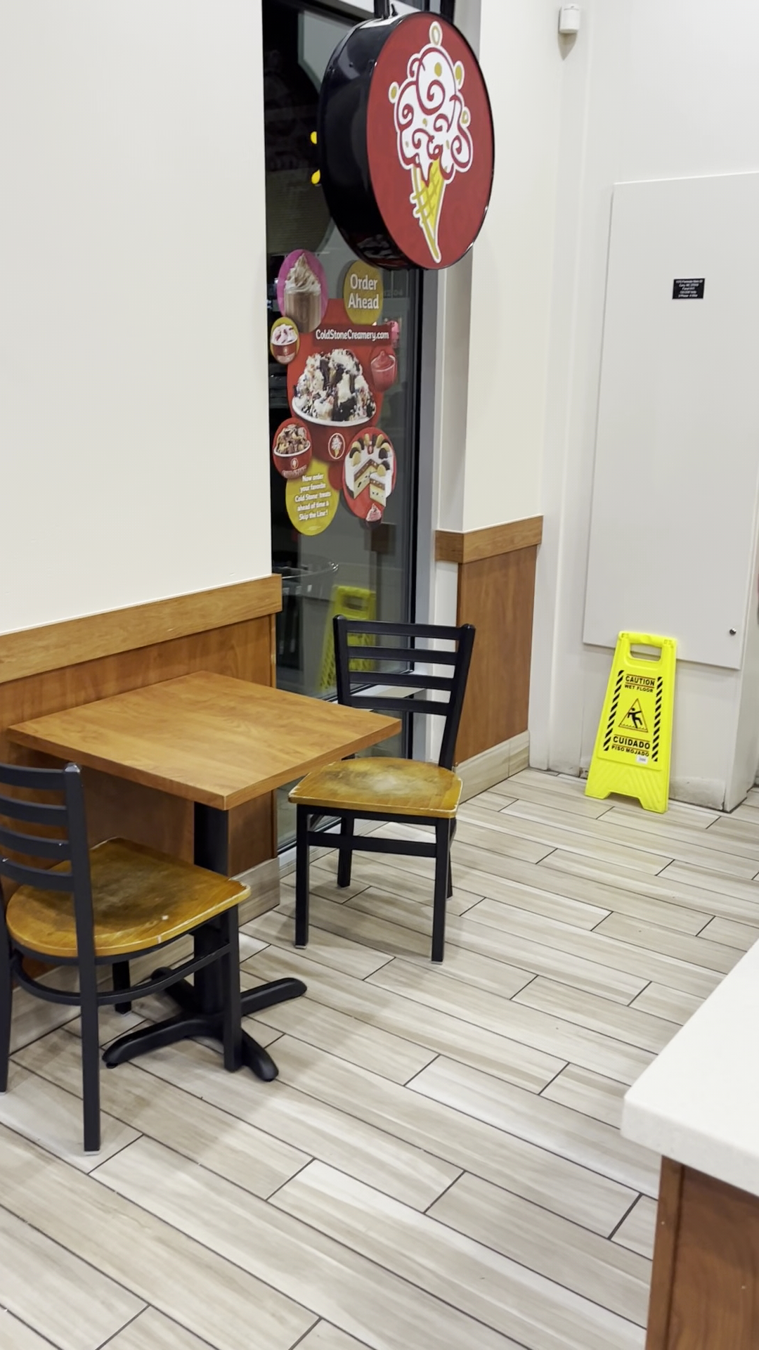 Read moreVery disturbed with the service. Very unfortunate that I even have to put a star to leave a review. If possible, I’d leave negative stars. No customer service or common courtesy was given when we walked in. Workers continued personal conversation while we both waited for assistance. When we were waiting for someone to assist us, we watched one of the workers drop the paper for rolling the waffle cones on the floor, proceed to pick it up after making eye contact with us making a face, then roll the waffle cones with the same paper she dropped. The other worker asked what my significant other wanted and she asked for the signature apple pie without pie crust/graham cracker to be added because she has food allergies. Lucky I was paying attention, and watched the worker put the crust into the ice cream. She restarted the order, and we confirmed that only the pie crust was to be absent from the signature. She then didn’t add the cinnamon. As much as we enjoy Cold Stone Ice Cream, we will not be coming back to this establishment. I would rather drive to the Fayetteville location before driving the 7 minutes to go to this location.