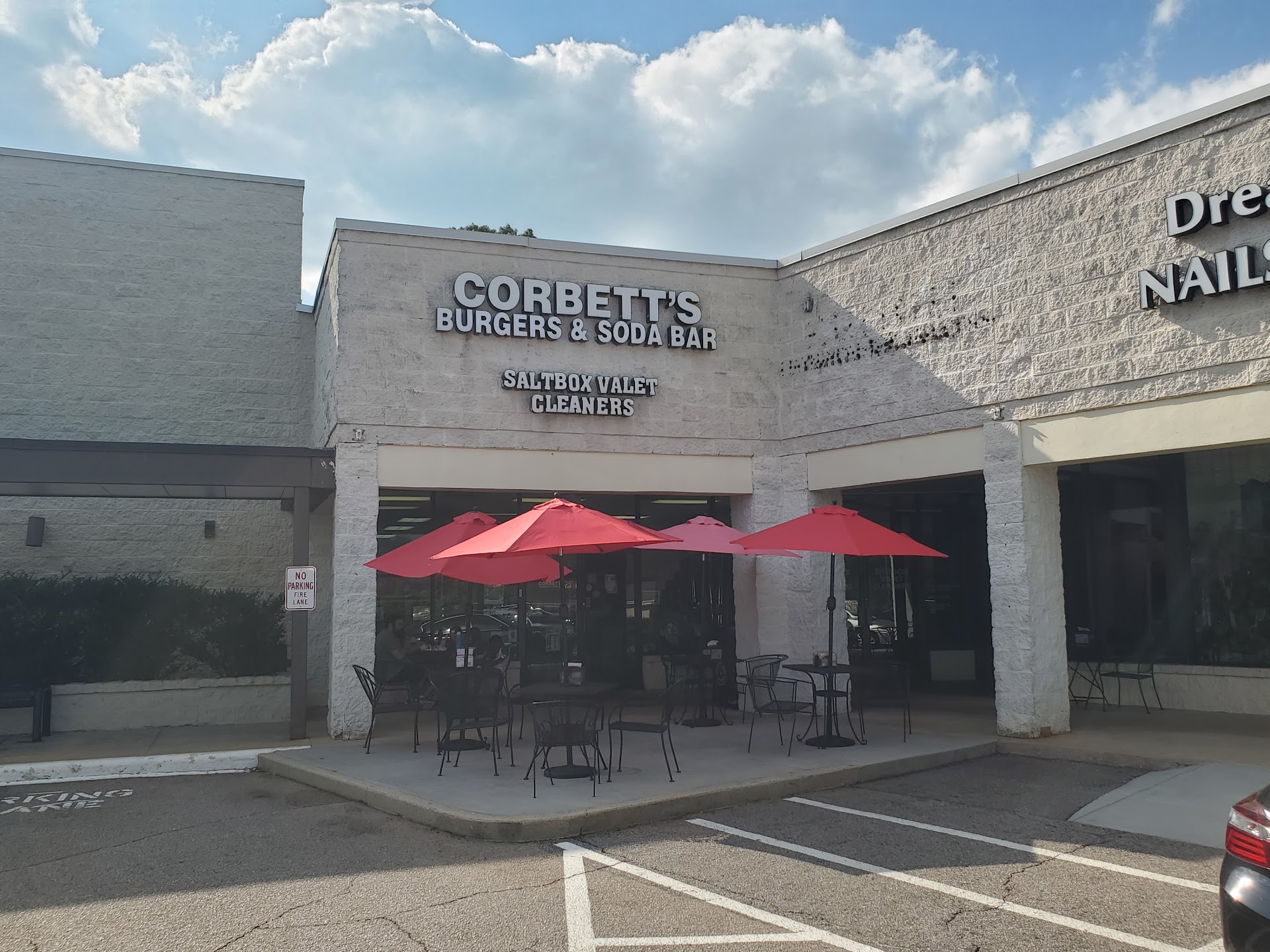 My team and I were headed back to the RDU airport, but wanted a good burger joint. We did a quick Yelp search and Corbett's came up as the obvious choice. We drove to the location, which is in the corner of an L-shaped strip mall, with Big Lots. We went in the shop to place our order. They have a huge selection of soda! I mean, such a huge selection, that if you don't see it in the cooler, that means it doesn't exist. I couldn't believe how much selection there was. If I had looked at each bottle to decide, I would have been on the soda choice for at least 15 minutes. After picking one out, I went up to place my order. The nice lady took my order, and punched it into her register, and then took my credit card. Note to all of you, they do not hand you a receipt at this point in the process, it actually comes out on the tray with your order. I ordered the Pimento cheese burger, and was very excited for it, as I waited at an outdoor patio table. The weather was HOT, but the flies were gathering and buzzing because the garbage can was within three feet of the tables. The staff is friendly, and my food was delivered hot and fresh. I opened my burger and dug in. There were two thick hamburger patties, so i was slobbering with anticipation! BLAH!! No taste, and this is a Pimento cheese burger, and I made it a double. I could taste the Pimento cheese just fine, but that is where the flavor stopped. I don't think they season their patties. I was so disappointed in my tasteless burger experience! I was so looking forward to giving this place a great review. I just can't. I am sure for locals, this place is the bomb diggity, but that was not my experience. I did order a small coffee flavored shake and that was good. The soda I had didn't have much flavor either. Jack Black cherry flavored soda. Friendly staff, but no flavor on my burger. I did not get a chance to taste the waffle fries. maybe next time. I would go back to try something else, but this burger joint doesn't even crack all the local top 10's, so maybe I will try a different place when we go...
