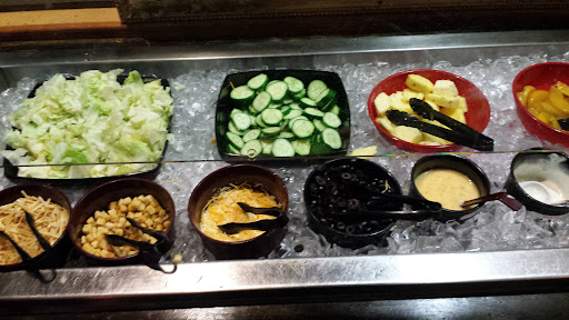 Quality 2/5 - In the picture you will see their salad bar. Lettuce, cucumbers, olives, croutons and cheese. No tomatoes, no onions, no mushrooms or green peppers, nothing really; and only three kinds of dressing. The bar was made up of tiny chopped veggies and frozen cut meat from who knows how many days or weeks back. The rise in prices while lowering cleanliness standards seems like a bad business idea. Penalizing your patrons with a $5 fee for them wanting to take their food leftovers home, has to be the most ridiculous thing I've ever heard of. For this reason, my wife and I will...