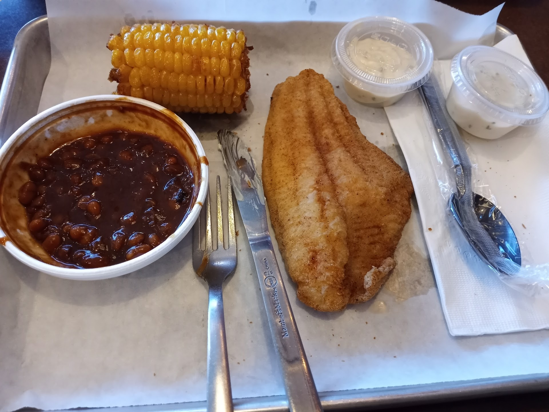 I had a piece of Texas toast that helped me stomach this fledgling of a filet with what was described as "fried" corn that was more sunburnt or air fried on high for too long.