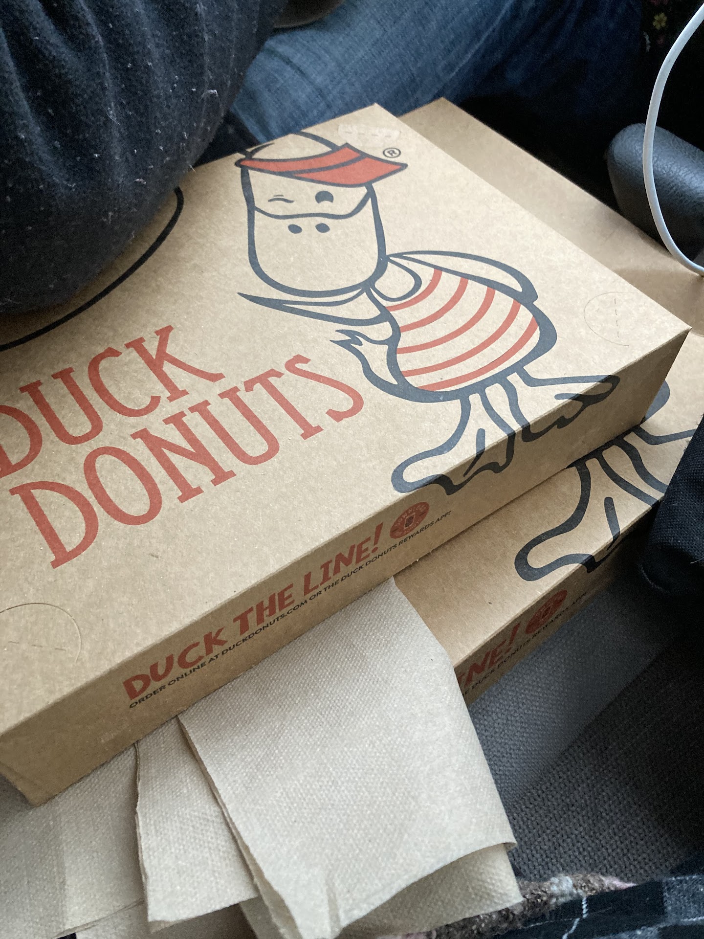 Last Sunday we put an order for 1 dozen holiday mix and 1/2 doz glazed For a holiday party To be picked up at 4 oâclock And I was running late and showed up at 4:17 Already behind planning to just grab my donuts and go. But when I arrived the manager Tristan informed me that someone else had picked up my donuts. He insinuated that Someone may have picked them up for me but I told him I wasnât sure how that could happen since nobody knew I was buying donuts. Unless There was someone who was out there reading my mind. And just had a hankering for donuts that day. So he looked at me and said âI guess Iâm going to have to make them again?â Well yeah! I paid for them! There were signs everywhere informing pick up orders that they must sign in order to recieve their order. When I pointed that out Tristan said that only pertains to delivery drivers such as DoorDash or Uber eats. At this point I was getting angry because I was already late and I suspect that they had just not made my order to begin with And weâre making up this mysterious person who supposedly picked up my donuts. So While I waited I asked Tristan if I could get a complementary mocha latte since I had to wait on my donuts. He said no he could not give me a free coffee or he would be in trouble. I asked him if he was the manager as he said how was it that he could not give me a free cup of coffee? I do believe if he had given me the cup of coffee and just apologized I would not be leaving this review right now. But he refused and was very rude. He even Followed me out into the parking lot to yell at me and my husband while we were getting into the car. Finally I got my donuts which were hastily put together on hot donuts the glaze melted off and was a hot sticky red and green mess by the time I got to my party. 2 inch thick pools of glaze surrounded each donut. Nobody was impressed. Least of all me. So now I will not be going back to duck donuts. It was a bad idea anyway because donuts are not good for you. Itâs basically like serving your friends a bunch of poison. But I wanted to support a small business and I was excited about the idea of holiday themed desserts. But I have learned my lesson well. Mostly I believe Duck donuts should think about changing their policy so that anyone picking up togo orders should be required to sign or show the order number. And Tristan should not be a manager. Even a manager at a donut shop. He needs some more customer...