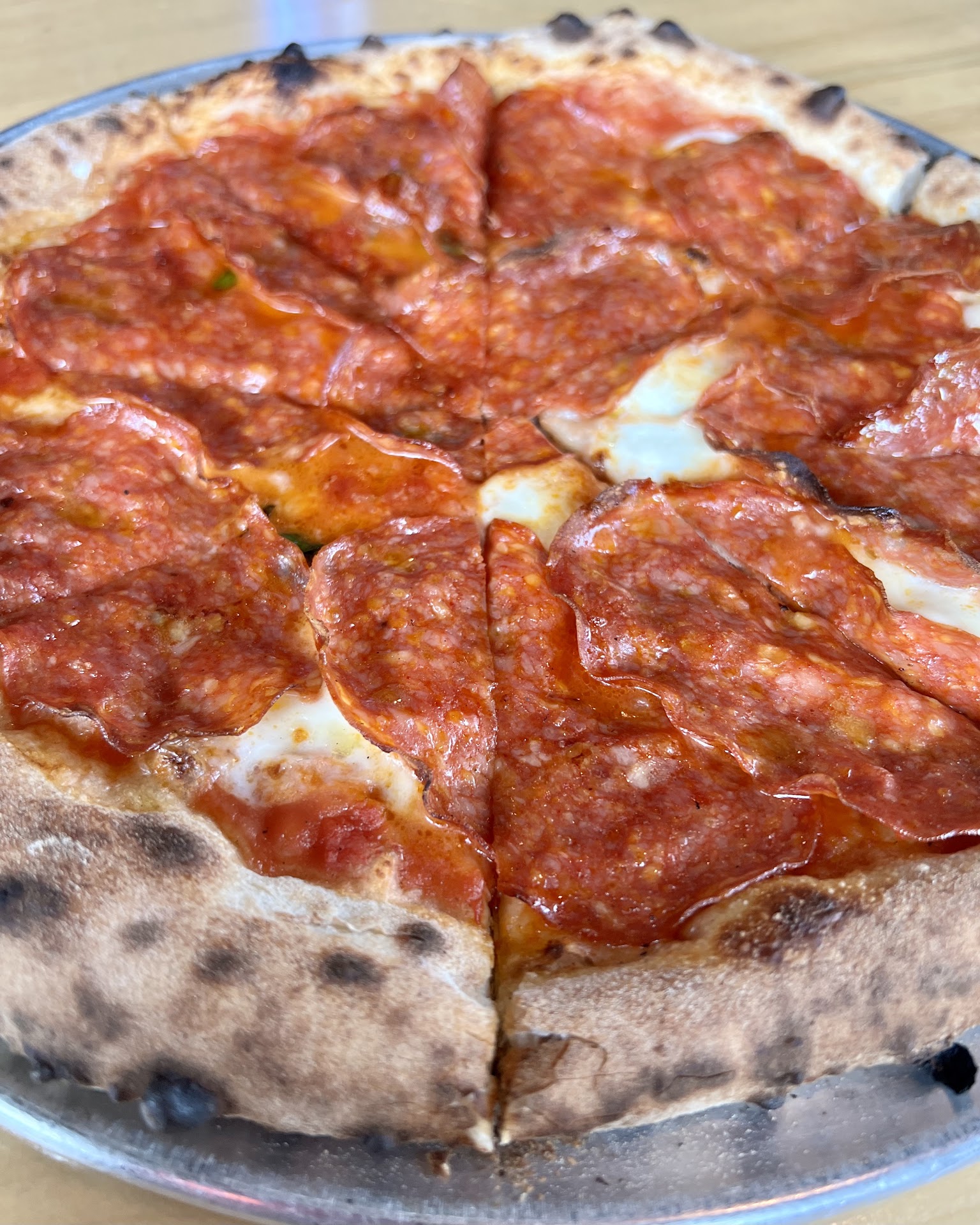 I was very impressed with the decor and layout at Pizzeria Faulisi. There was so much hype around this restaurant on instagram and local food blogs that we waited a bit to check them out. We stopped in on a Saturday night. They do not take reservations just so you know and are closed Monday and Tuesday. They also are not a conventional take-out pizzeria. They focus on their diners and guests at hand and will do take-out if there is time or on slower nights yet take-out is not their priority and will tell you upfront. We did go on the earlier side on a Saturday night and Bond Brothers and the epicurean market next door were just hopping with guests. It was very nice to see such a lively forum in downtown Cary and everything is just picking up on Chatham Street. The hostess was very friendly as we entered the Pizzeria and she told us the wait would be about 40 minutes. We agreed and gave her our name and phone number. We sauntered over to Bond Brother, sat down for a beer and then the phone buzzed with a text that a spot for 2 was ready at Pizzeria Faulisi. Since we weren't immediately ready to gulp down the beer and run over, there was a text 2 option to say that we needed a few more minutes. We made our way over to the restaurant when we settled our tab at Bond Brothers and were ushered to two seats at the bar in the pizzeria. Pizzeria Faulisi is a small restaurant with only a few tables and bar area. The pizza oven is right there in the open by the bar and you can dine and watch all of the pizza baking and salad preparation. On the left side of the bar is where the drinks and cocktails are crafted. I love the decor and use of glassware, freshly cut flowers, and amber colored water glasses to adorn the tables and bar. The menu was presented to us by our fantastic server named Maggie and she was extremely polished and ran the front of the house. I overheard the couple next to us say they knew her from the Durham Hotel so she has been in a hospitality and food service role before and really knew how to make guests feel welcome and had that extra level of service that not many people have. Maggie presented us with a two-sided paper menu with a selection of salads and pizza and gnocchi and drinks. They do not have draft beer (only bottles), red and wine whites served in stemless glasses and craft cocktails that were made with fresh lemon rinds and tasty ingredients. Every time I looked at the bar decor, I felt like I was transported to the 1920's mixed with Pottery Barn. The champagne glasses lined up on the wooden shelving were from the Great Gatsby and they used fresh green magnolia tree leaves and branches to adorn the shelving. The pizza chefs were busy in front of the oven making each pizza. There is no dough flying in the air but more dough being spread out on the silver pans. They then add fresh red or white sauce, cheese and fresh toppings. The gnocchi is prepped in oven-ready bowls and put in the hot oven to cook. It was really neat seeing the pizza being made and everything is out in the open. I started with the salad with pine nuts and lemon vinaigrette and it was a large portion for a starter and I loved the bitterness of the arugula and greens. For pizza, I had the margherita and it came cut into pieces (no scissors). I liked it yet I felt it it needed a little more salt and I don't know if that was the sauce or cheese. The pizza is up there with Tre Froni and Pompieri and the dining experience was very memorable. If you are looking for a nice evening out in downtown Cary with pizza, red wine and really neat decor, come to Pizzeria Faulisia. For dessert, I recommend walking down the street to Fresh for ice cream to finish the downtown Cary experience. Congratulations, Pizzeria Faulisi on a successful venture and really...