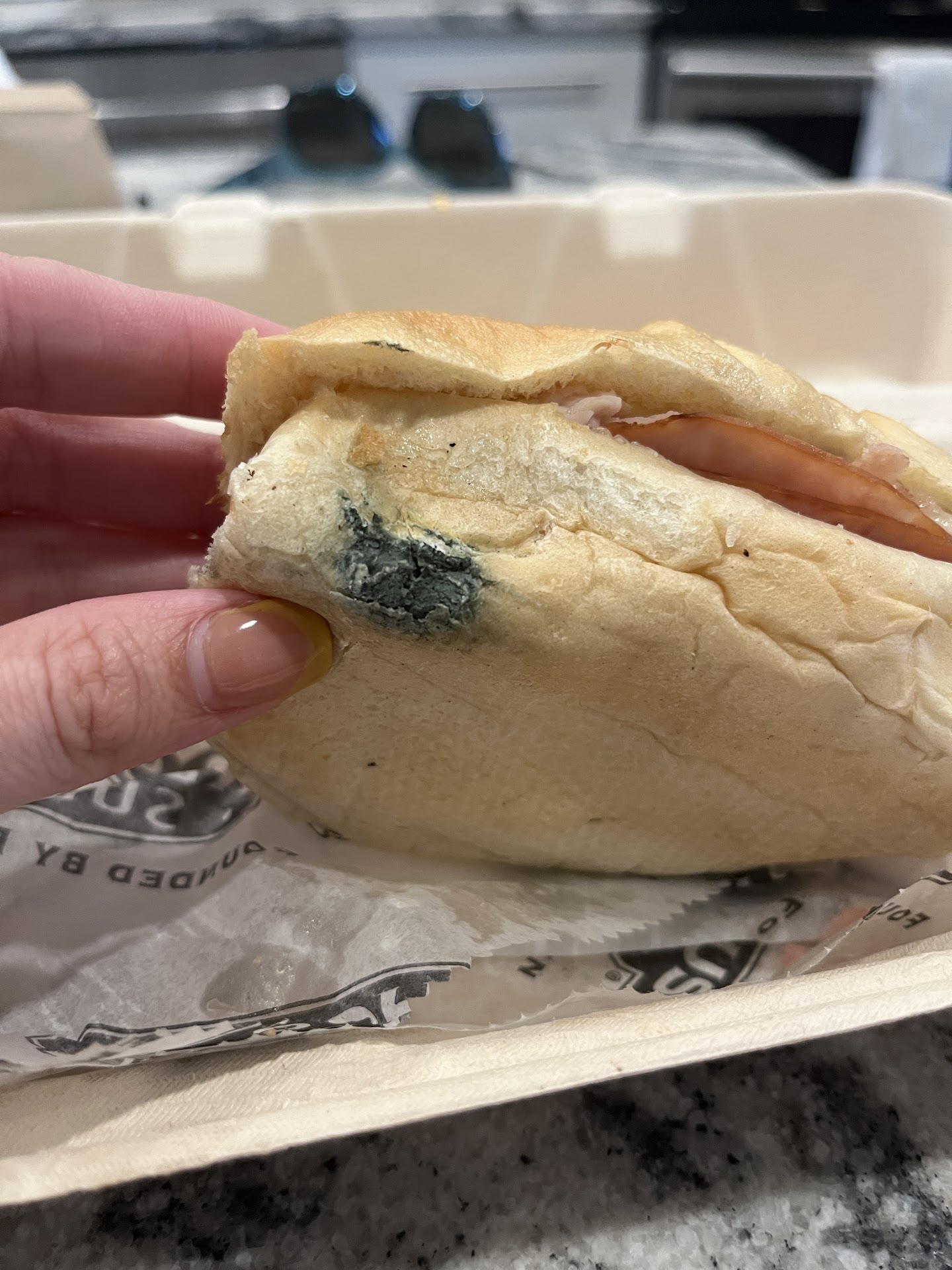 MOLDY BREAD! RUDE EMPLOYEES! Stay away!! I ordered a sub on the app. Picked it up. And drove home. The service to begin with was great! The sandwich was even very good! UNTIL I found mold on the sandwich When I called the store I overhead the guy telling his boss that they have had a problem with mold on the white bed for a while. He said that another employee found mold the day before and he found mold earlier that day. He offered me a refund but I would need to return to the store which I said was difficult for me bc I was not in the area (traveling through for work). I told him that I overheard him tell his boss that this has been happening a couple of times and I said it was concerning that this has happened before and it is still happening. He told me “it was a quality control issue and they had thrown away the previous moldy bread and not served it to customers and it was not a store issue. and if I was going to continue to throw accusations around then I’m going to hang up”. Which he did immediately. I tried calling back several times over the next few hours and they would not answer the phone. After finishing work, I drove back to the store and asked for the refund. While he was issuing the refund, I said “I don’t think you handled that appropriately” he responded with “well you can keep your opinions to yourself” I walked out and told the emoloyee who was standing by the bread, to check all the bread loafs. The next day I called and spoke with the general manager, Mayuri, she was not receptive to the complaints and kept cutting me off as I was trying to explain what happened and just kept offering me the refund. I was finally able to tell her that I had already gotten the refund and to please let me finish explaining all that happened (the details the employees left out). She was rude and dismissive of the issue. she then told me that every so often that get bread with mold on it and just throw that one piece away. While also saying, they do not have a mold problem even tho it’s obvious they do and have known about it for days. I let her know that I was calling the health department and filing a formal complaint. She told me to go ahead and call them. She finished by saying “is there anything else you want to rant about because I have other customers” I was shocked at the lack of professionalism, lack of care for a mold problem, and willingness to fix a known mold problem. I said an expletive word and hung up. I highly recommend avoiding this location and if you do dine there, CHECK THE BREAD FOR MOLD...
