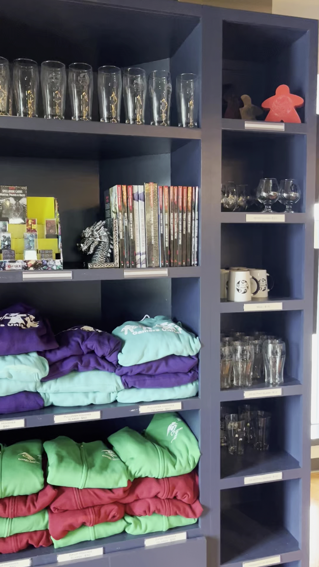 Selection: Relatively speaking ... very few games to choose from. Again, I'm just going off other places I've been to. There were maybe 1 shelf for every 4 I was expecting. That being said, the selection they had was solid, ranging from any type of tabletop interest. I feel like I could explore this place for months and keep finding a new gem.