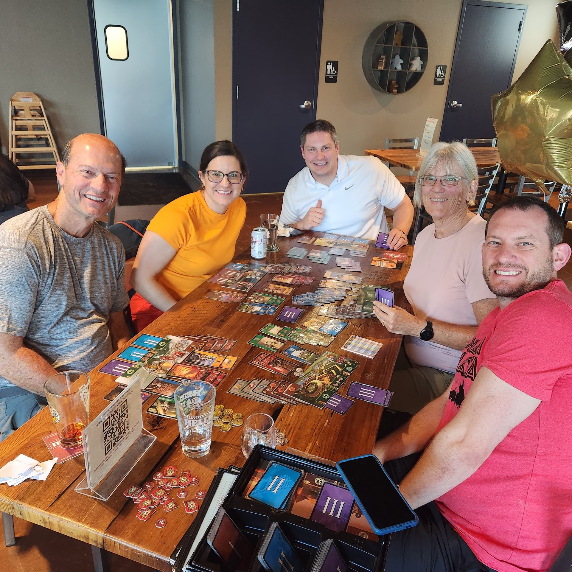What a great gem ya’ll have in Raleigh! I highly recommend this spot for meeting up with a few friends for games-plus. I brought a new colleague who is unfamiliar with modern board games and this was the best experience I could have hoped for. Service: very friendly and helpful. They will let you do your own thing until you come up to the bar and ask for help or to order. Food: Good selection, well prepared, good price. I would rathe come here for a bite than any other chain or similar mainstream restaurant. Game space: large, study, and beautiful tables well-spaced to give you room to walk around. On this Friday night it was busy and very lively. My colleague and I offered to share our table with a couple that came it. Enough space for two two-player games and food. Game Library: I believe it is available on their website. Very nice selection of games. We had plenty for my colleague to learn in and several others I’ve been looking to play. Social: I saw a MTG event going on. I did not see anything on their website about other open table social events to join pickup games or the like. But, if you have someone to go with, or even a small group this...